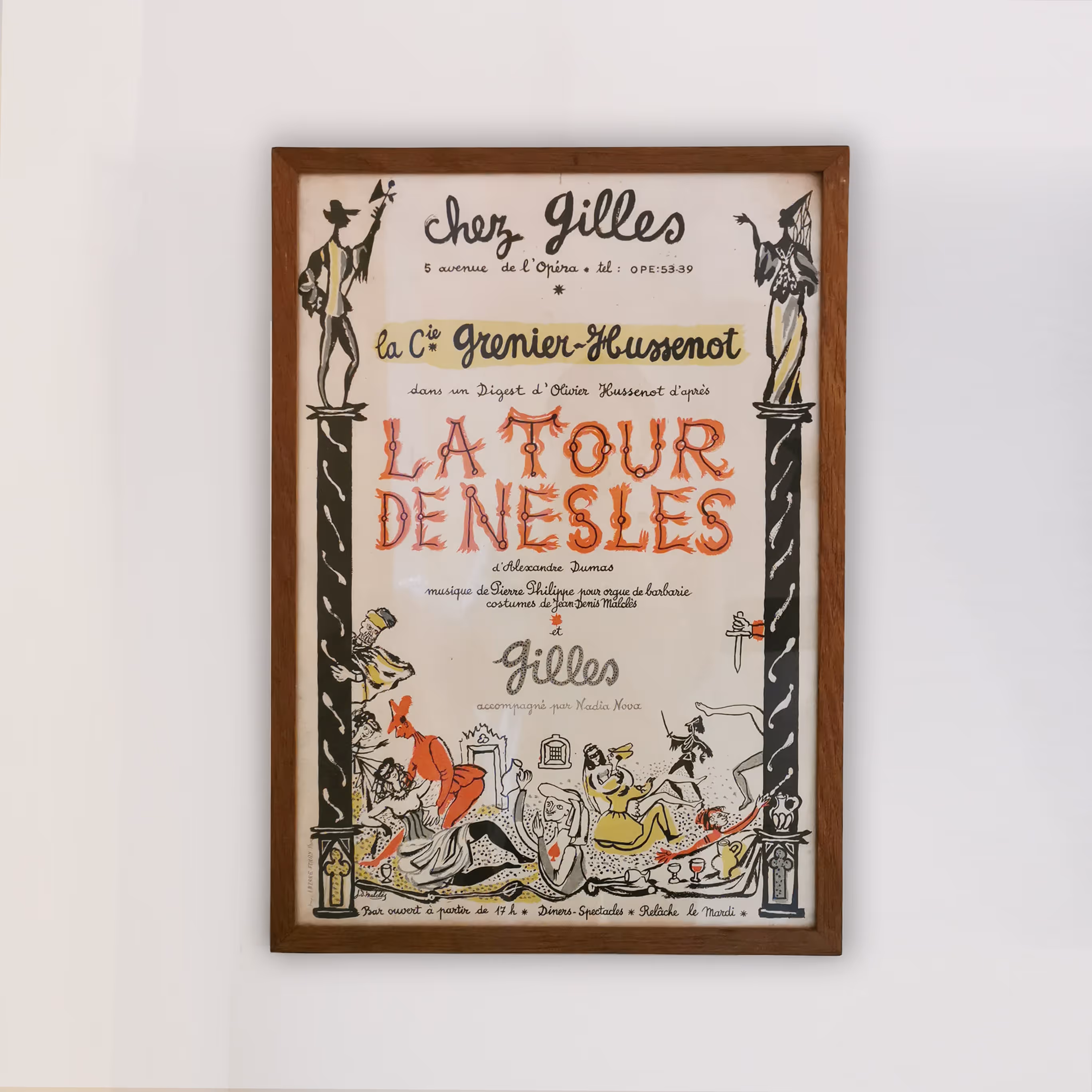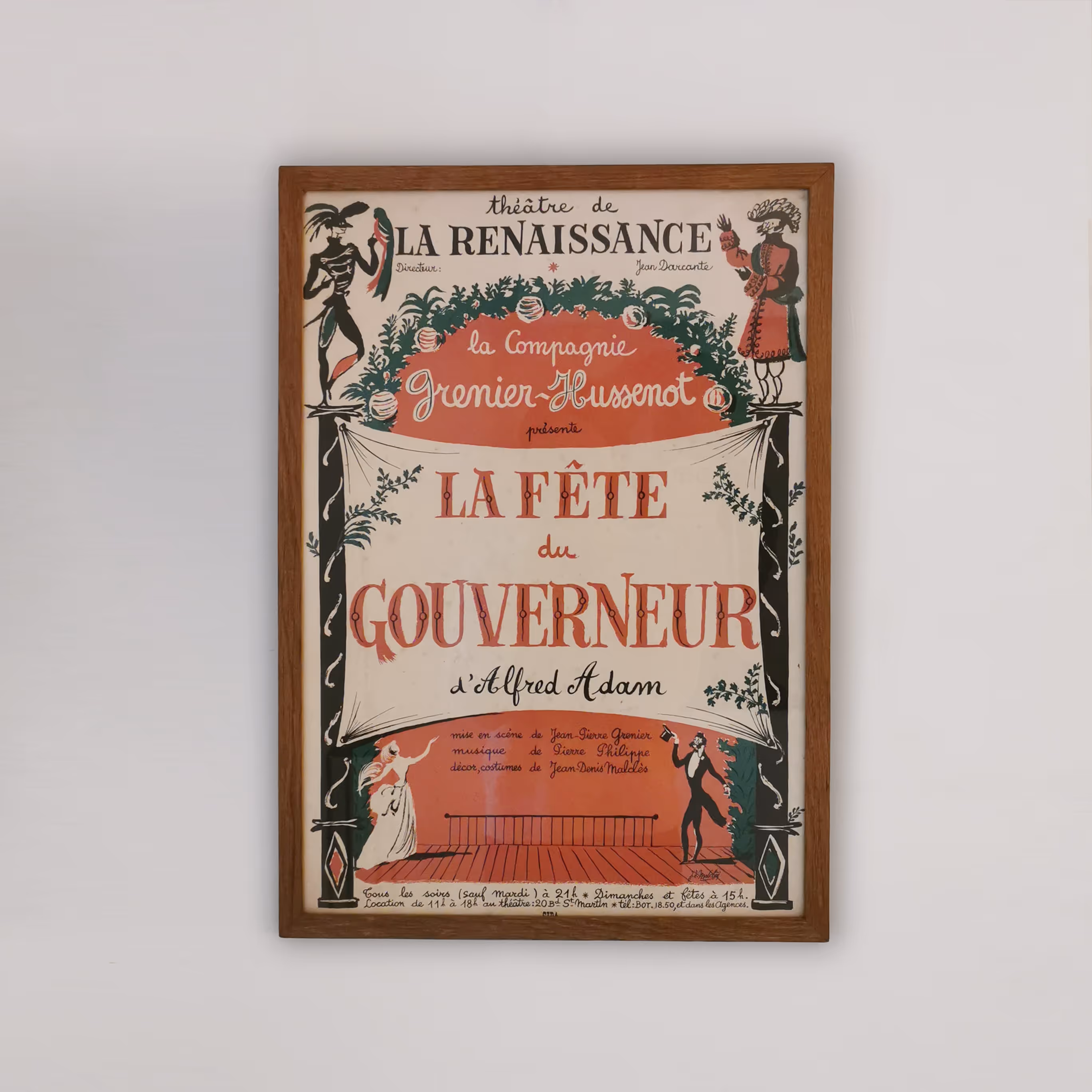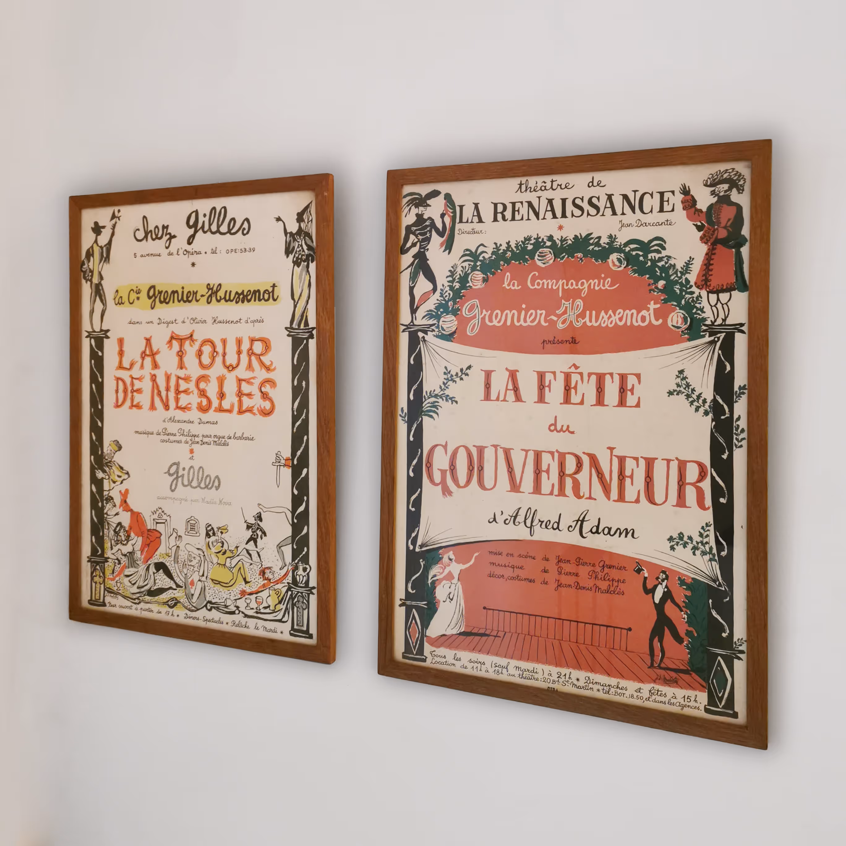 Two Paris theatre posters illustrated by Jean-Denis Malclès. Original oak frames.
