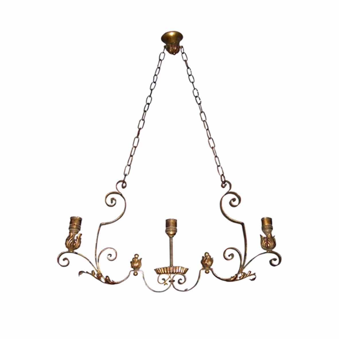 A gilt wrought iron pendant light (please note that gilding is more dull in reality than on the picture)
