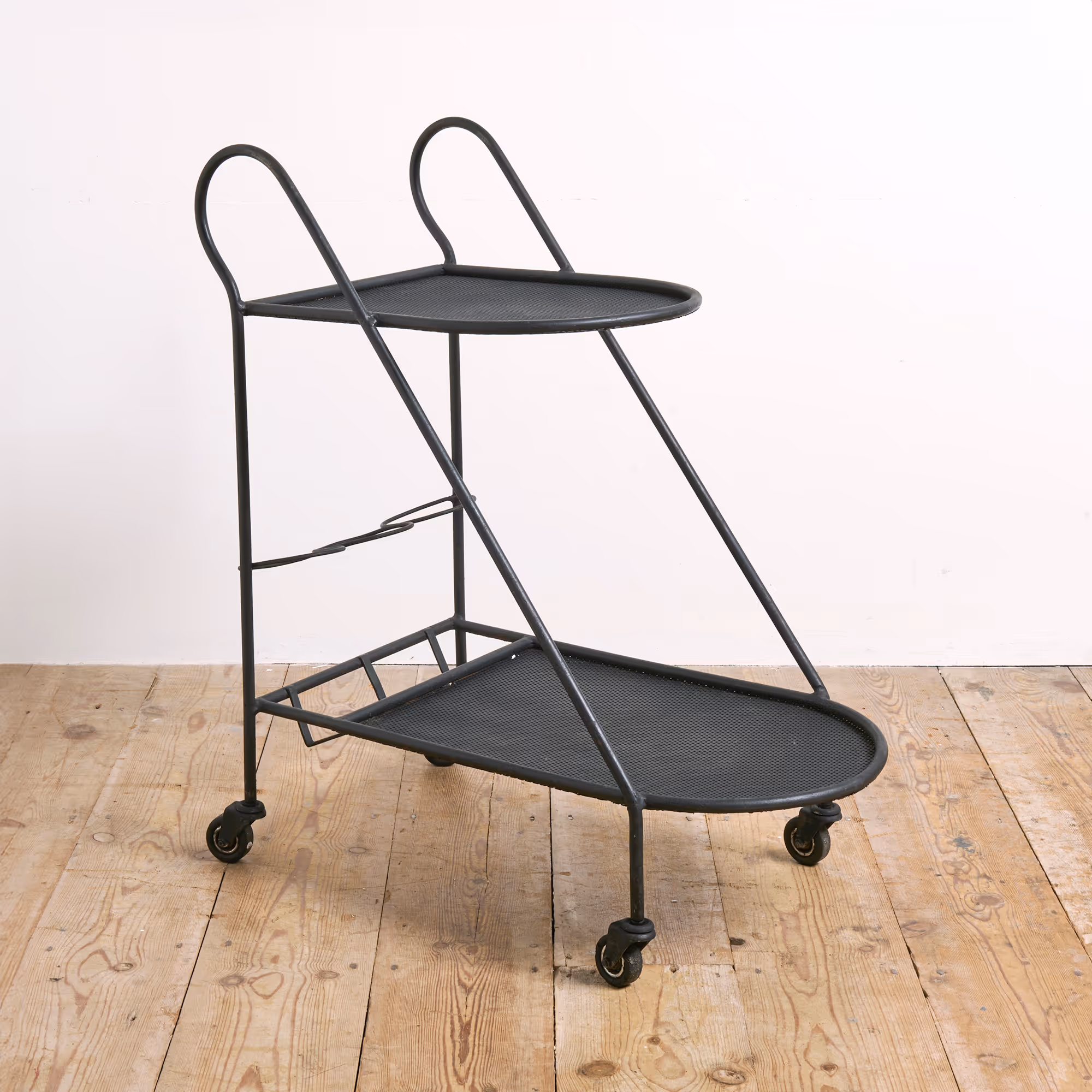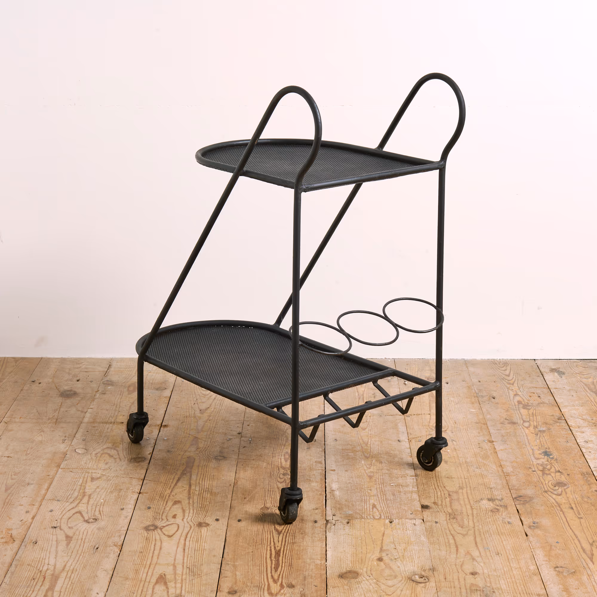 Perforated steel drinks trolley in the manner of Mathieu Matégot.