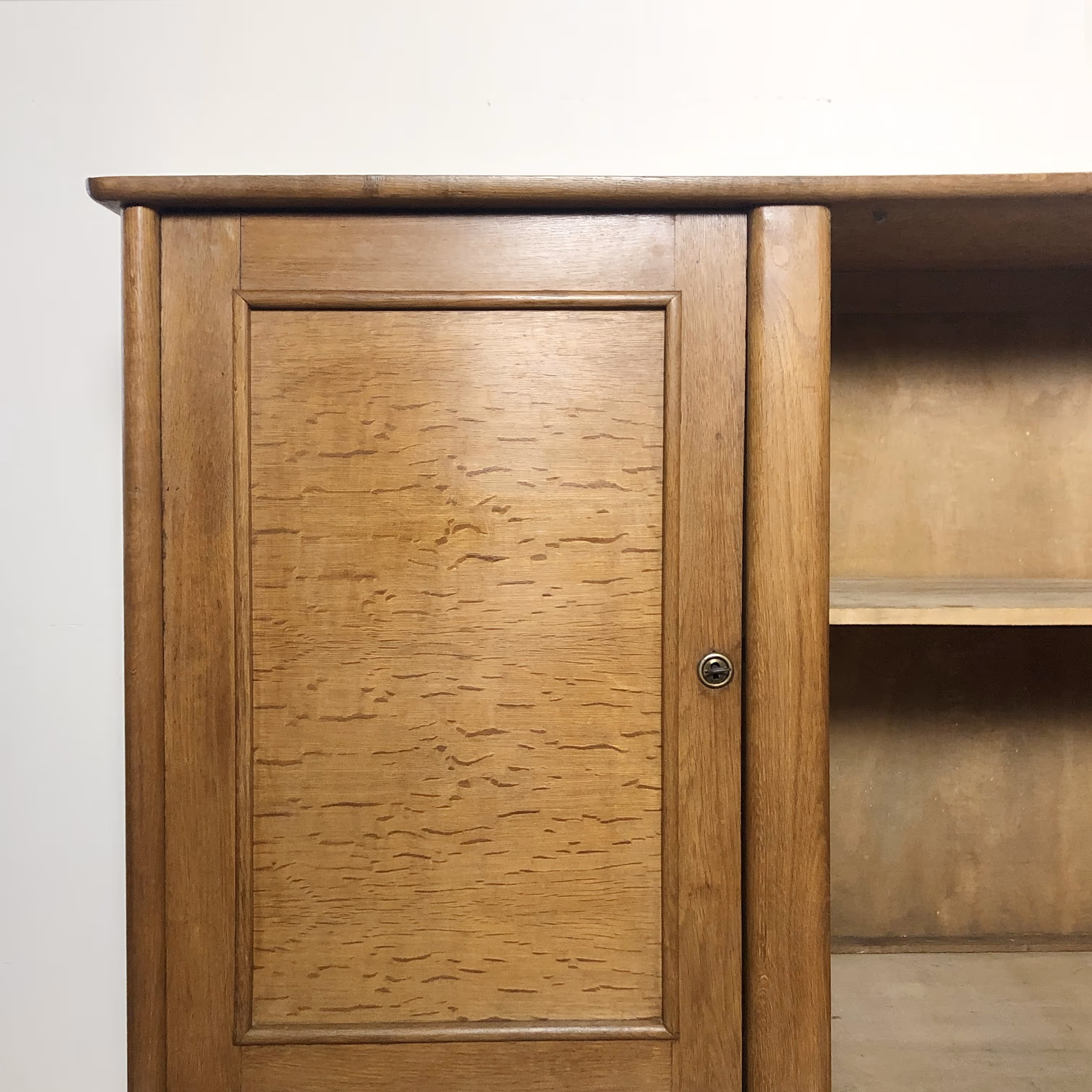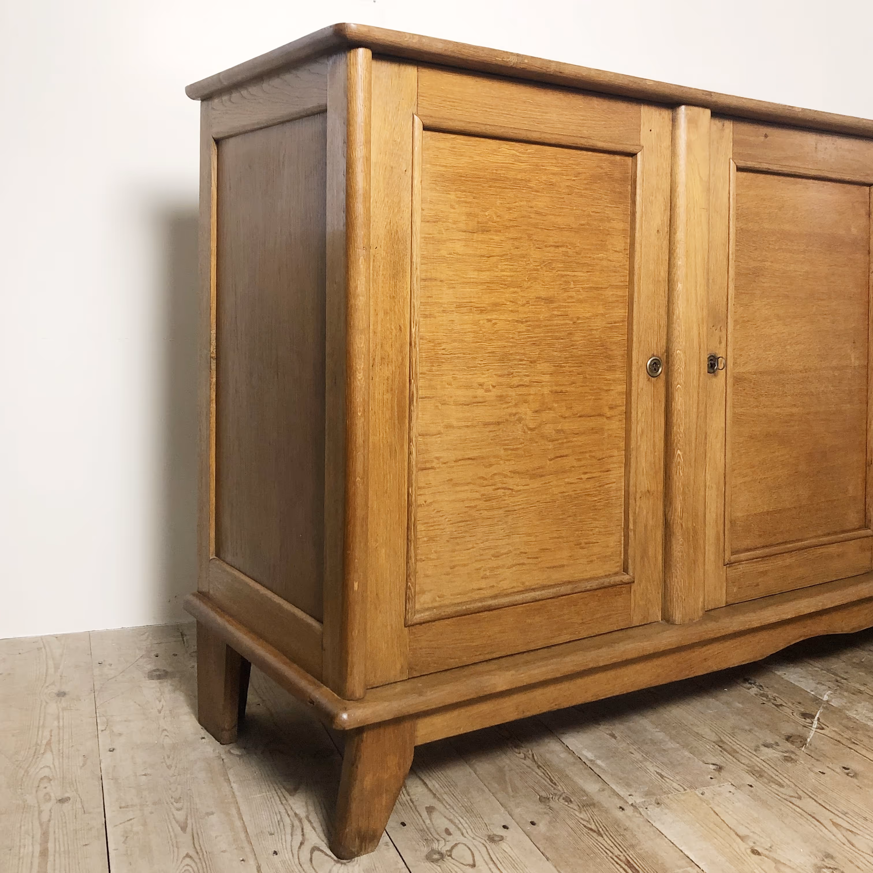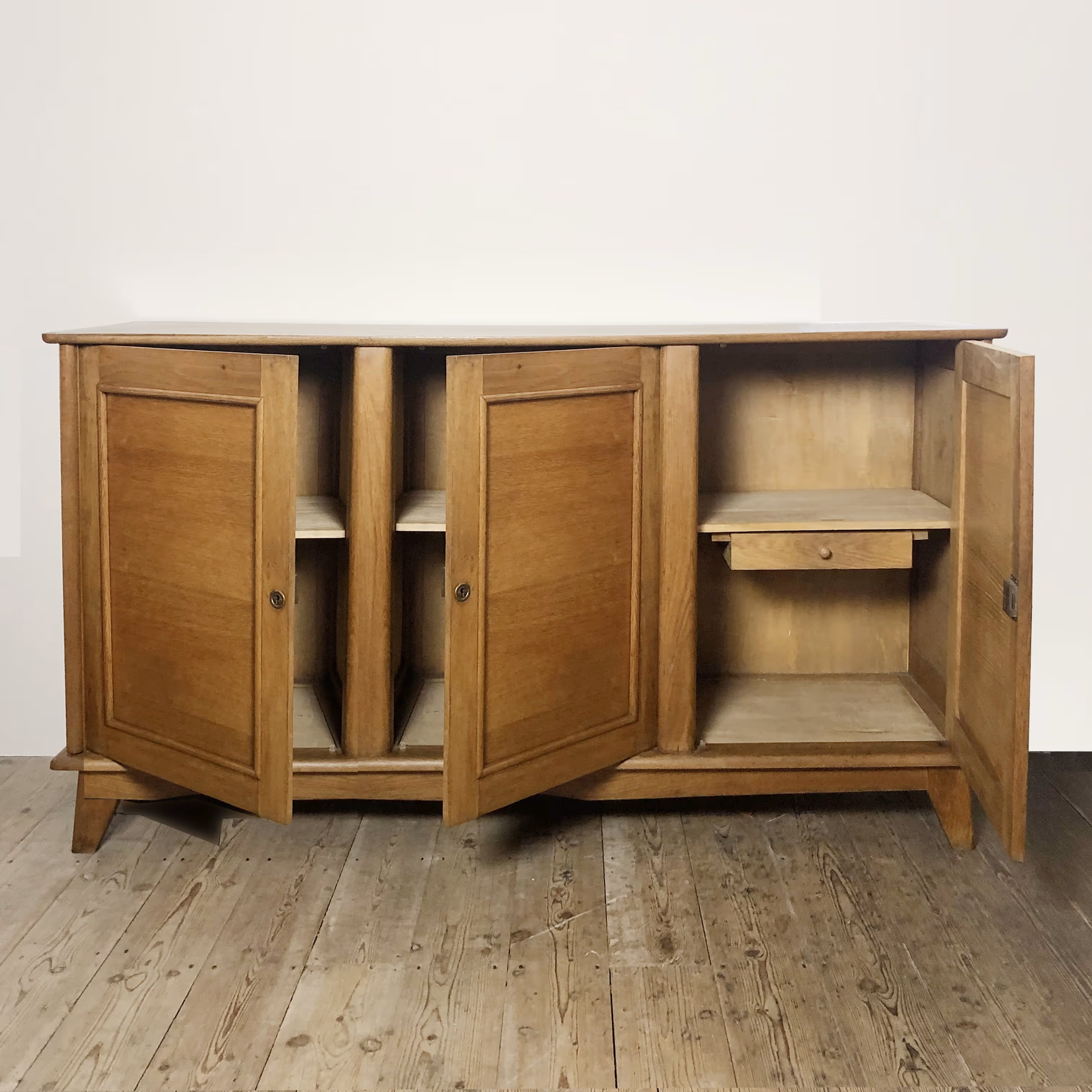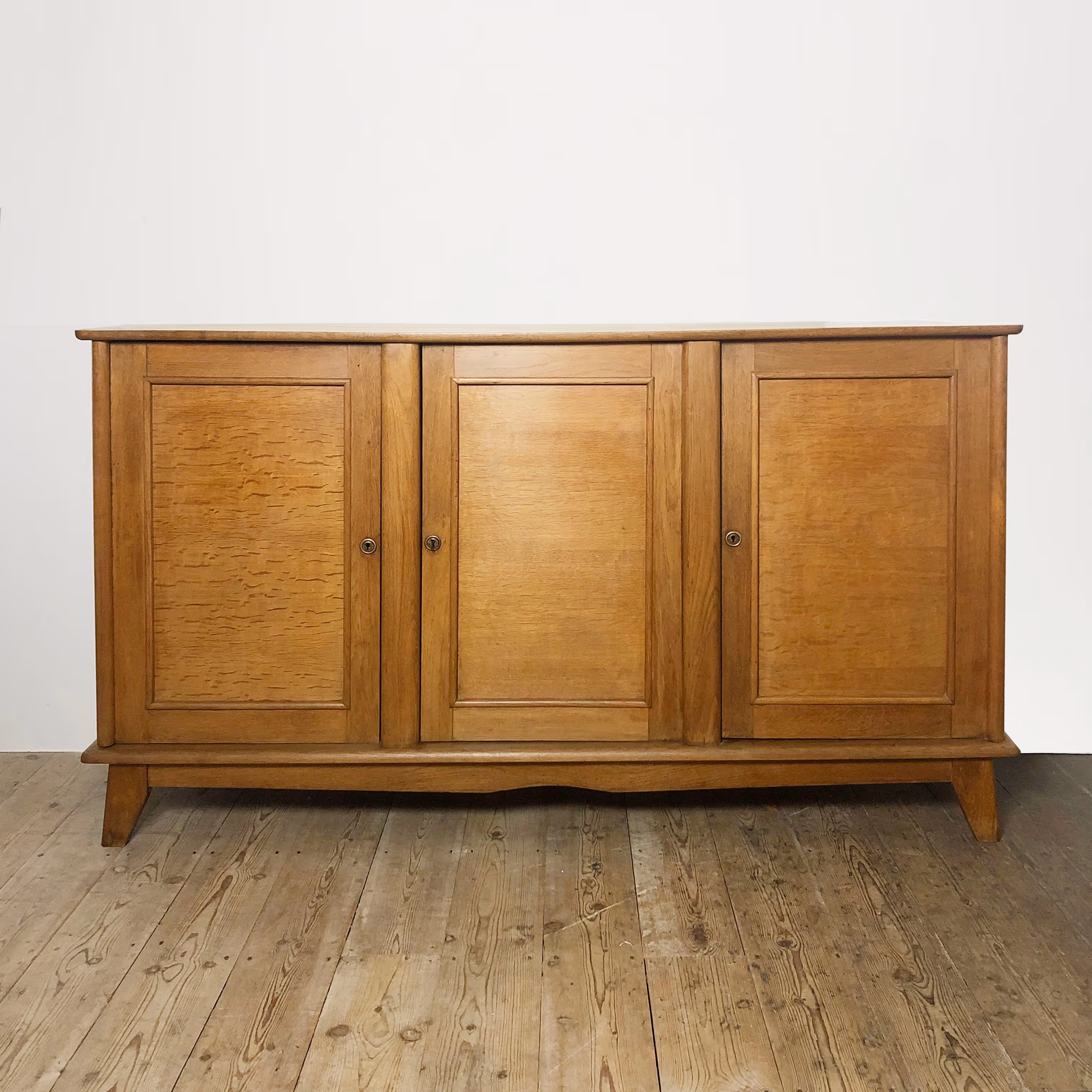 A large solid and veneered oak sideboard from the Reconstruction period, just after WW2. It comprises of three doors revealing one shelf each two drawers.