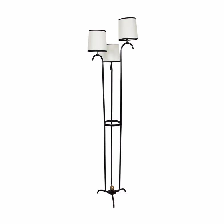 A 3-way floor lamp with brass details and bespoke shades. Rewired & PAT-certified