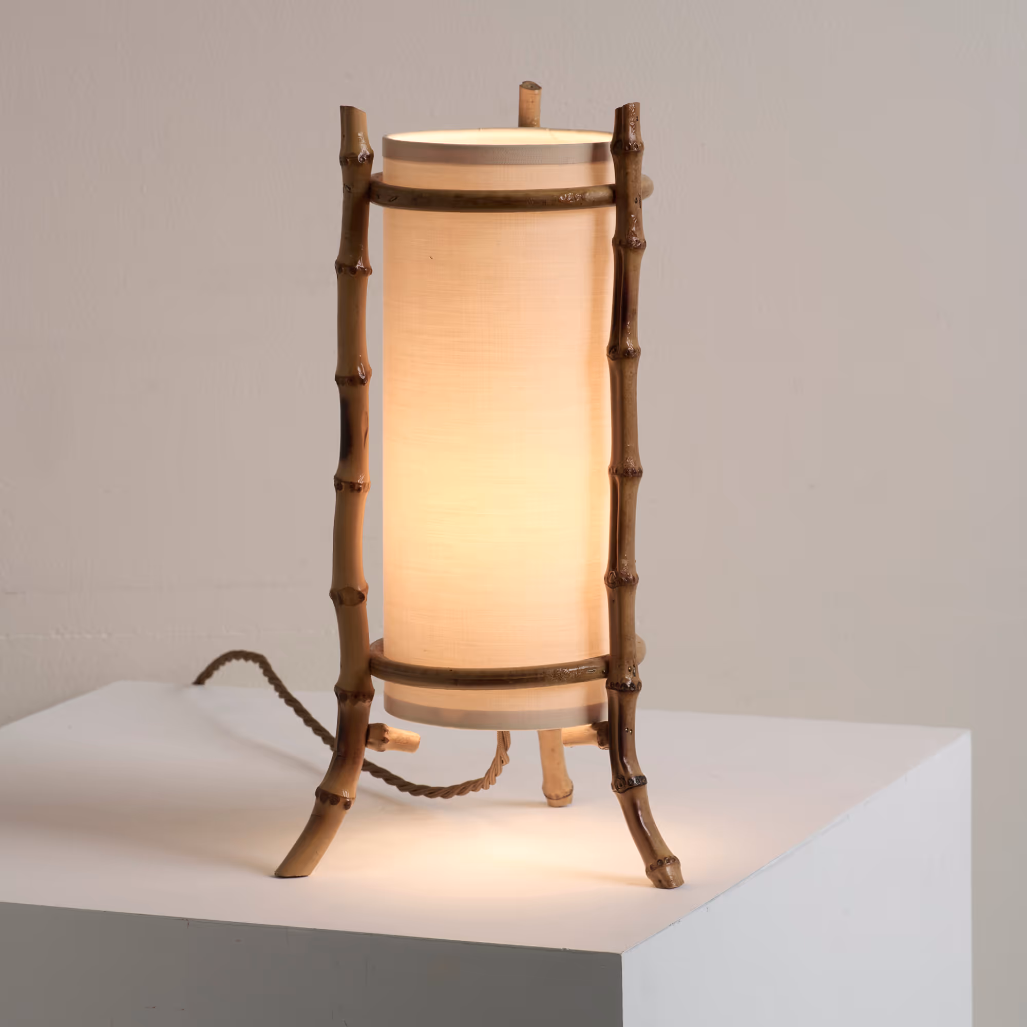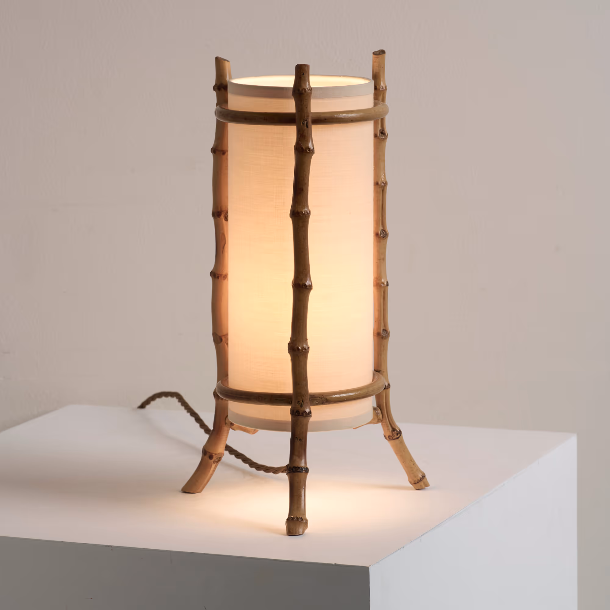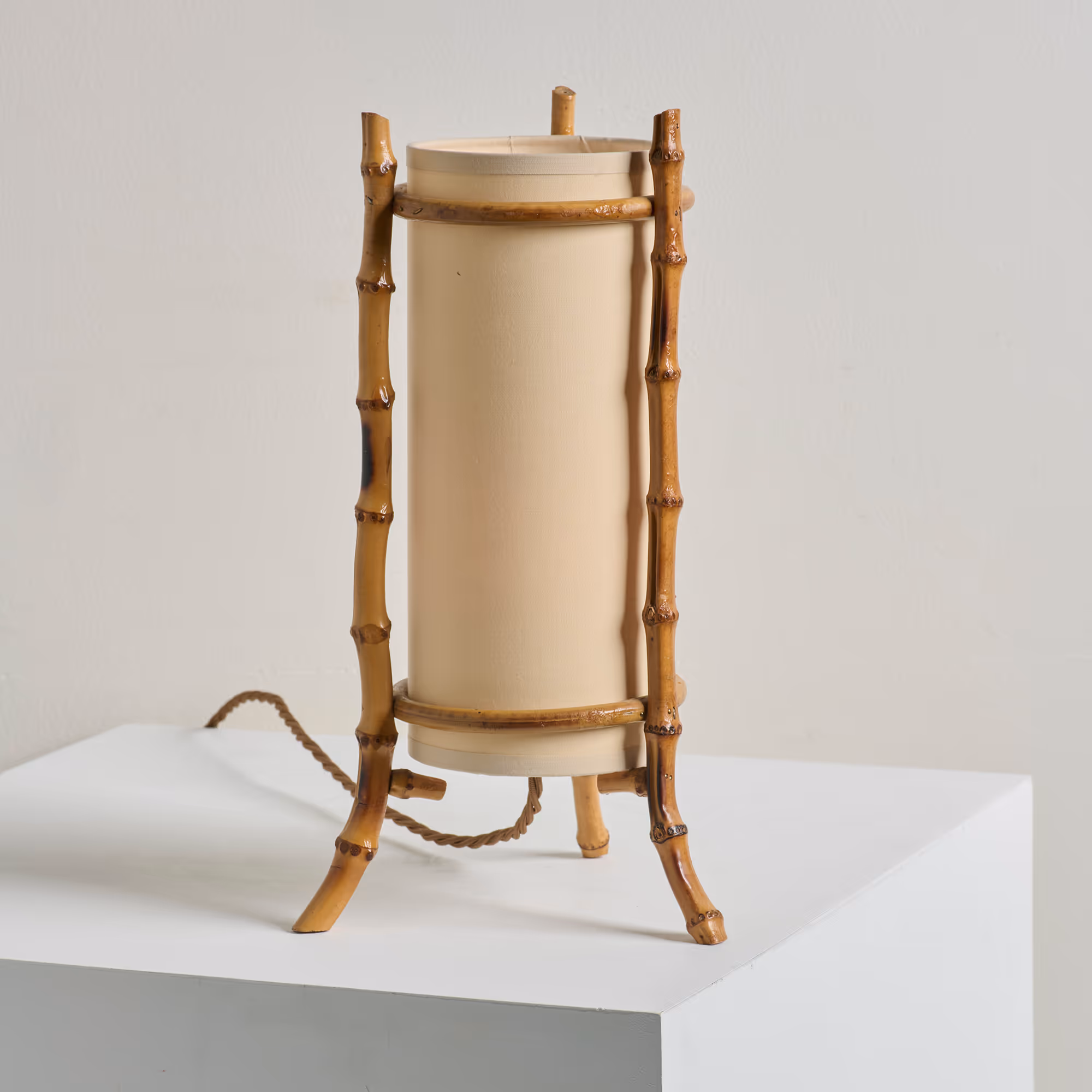 Delicate cane table lamp. Original shade recently recovered in cream cotton.