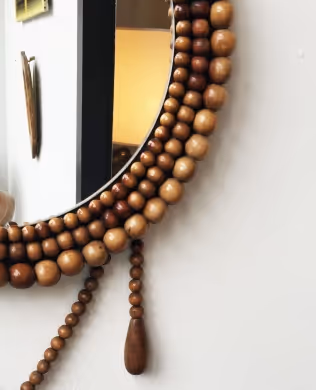 A wooden bead mirror.