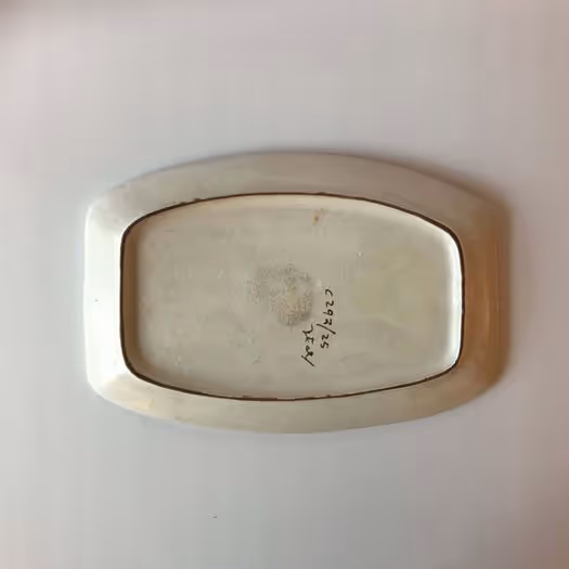 White Pottery Dish with multicoloured geometric deco by Bitossi.