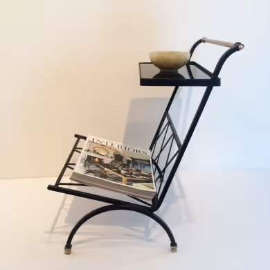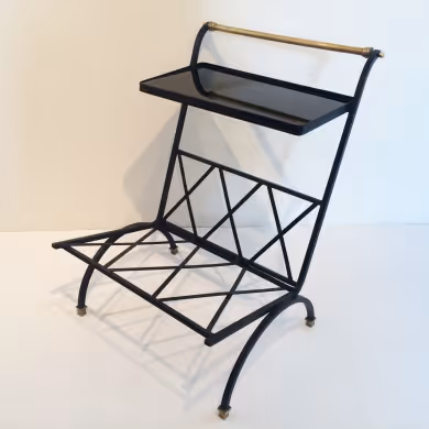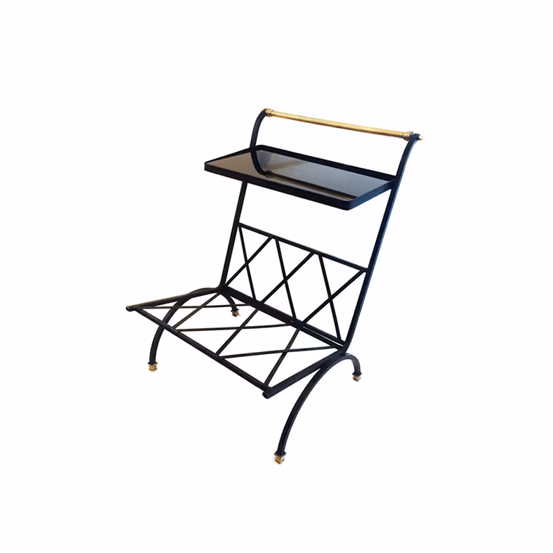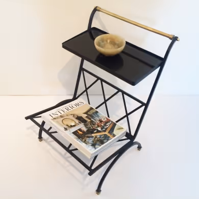 A black and brass side table/ magazine rack by Maison Bataillard