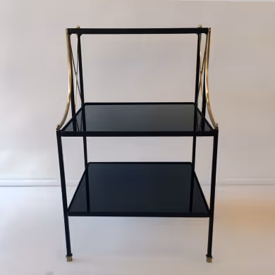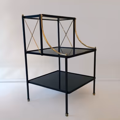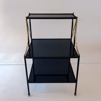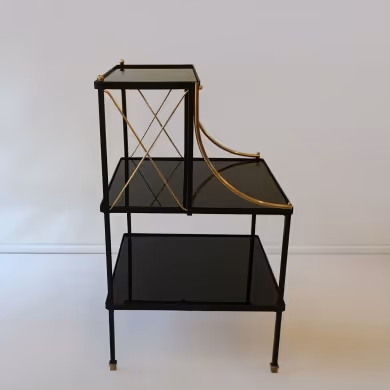 A 3-tiered brass and black glass side table by Maison Bataillard