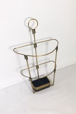 A brass umbrella stand. Possibly Jacques Adnet.