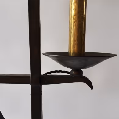 A cast iron floor lamp with faux-candle detail. Re-wired & PAT-certified