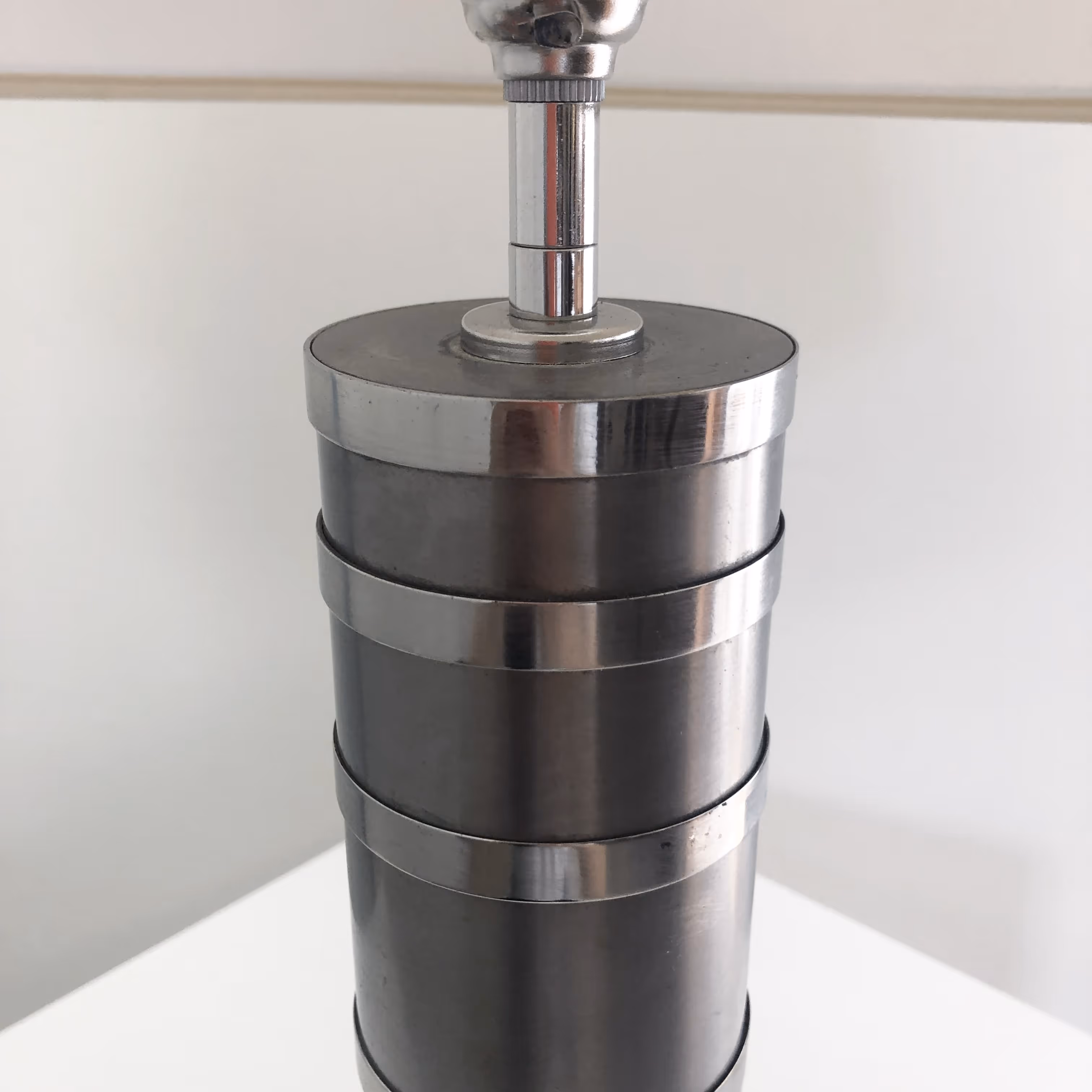 Nickel-plated column table lamp with an octagonal base and graduated tiers.