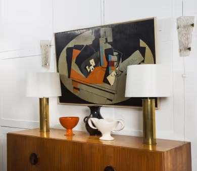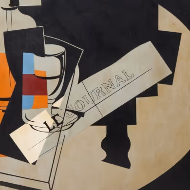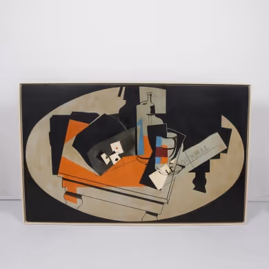 A cubist still life after Juan Gris' "Still Life with Playing Cards and Siphon" (1923) with an alternative colourway and an enlarged scale