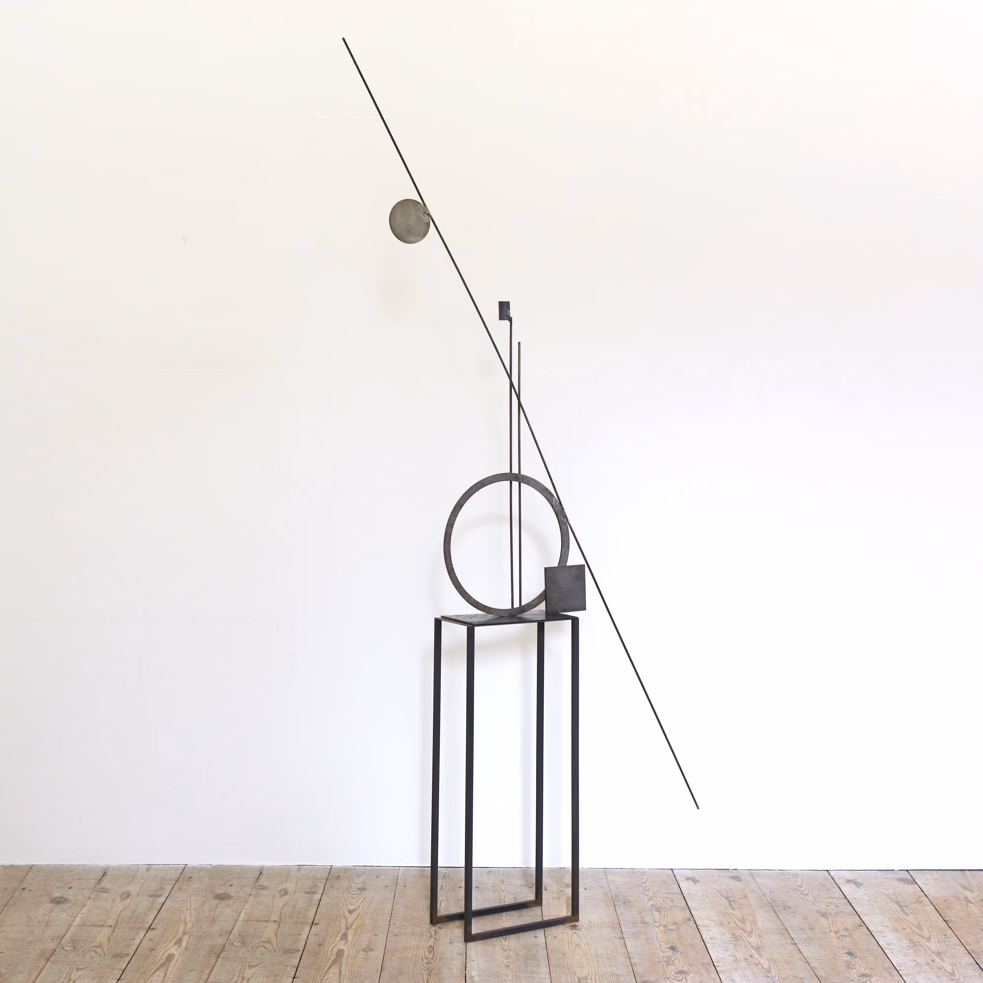 Floor metal sculpture, dated 2001. Indistinctly signed.