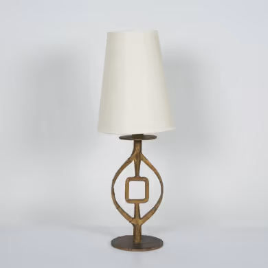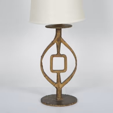 A gilt iron table lamp with bespoke shade. Rewired & PAT-certified
