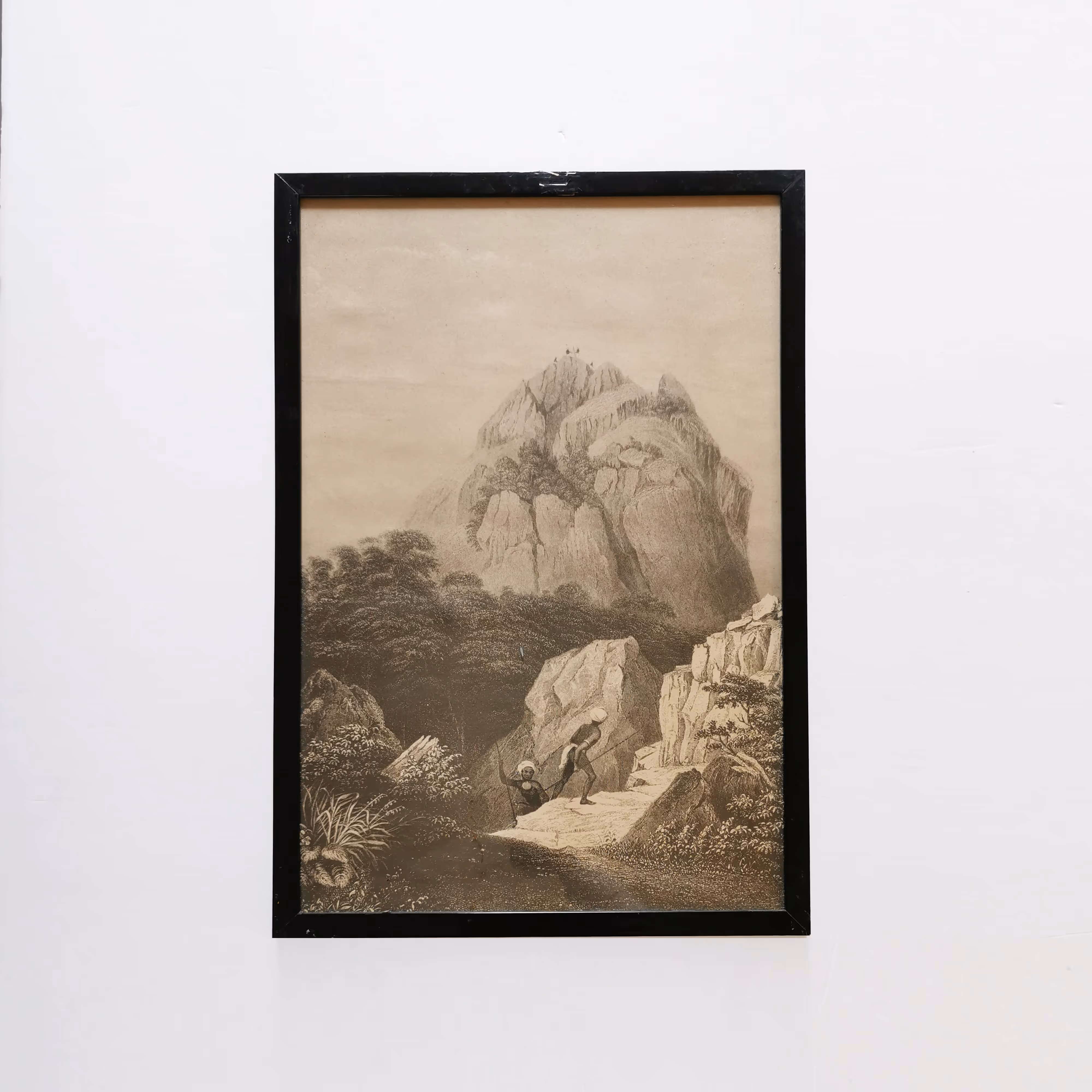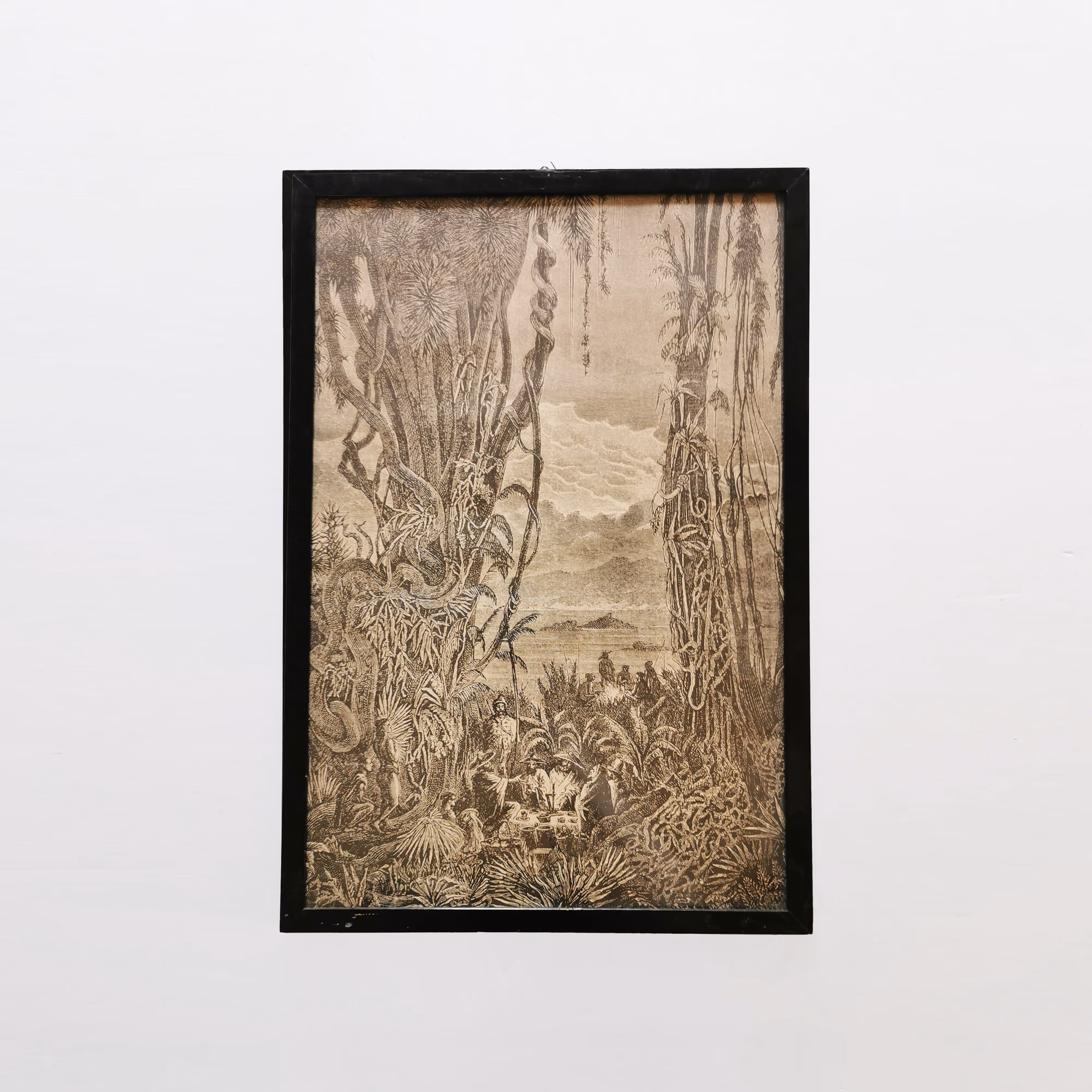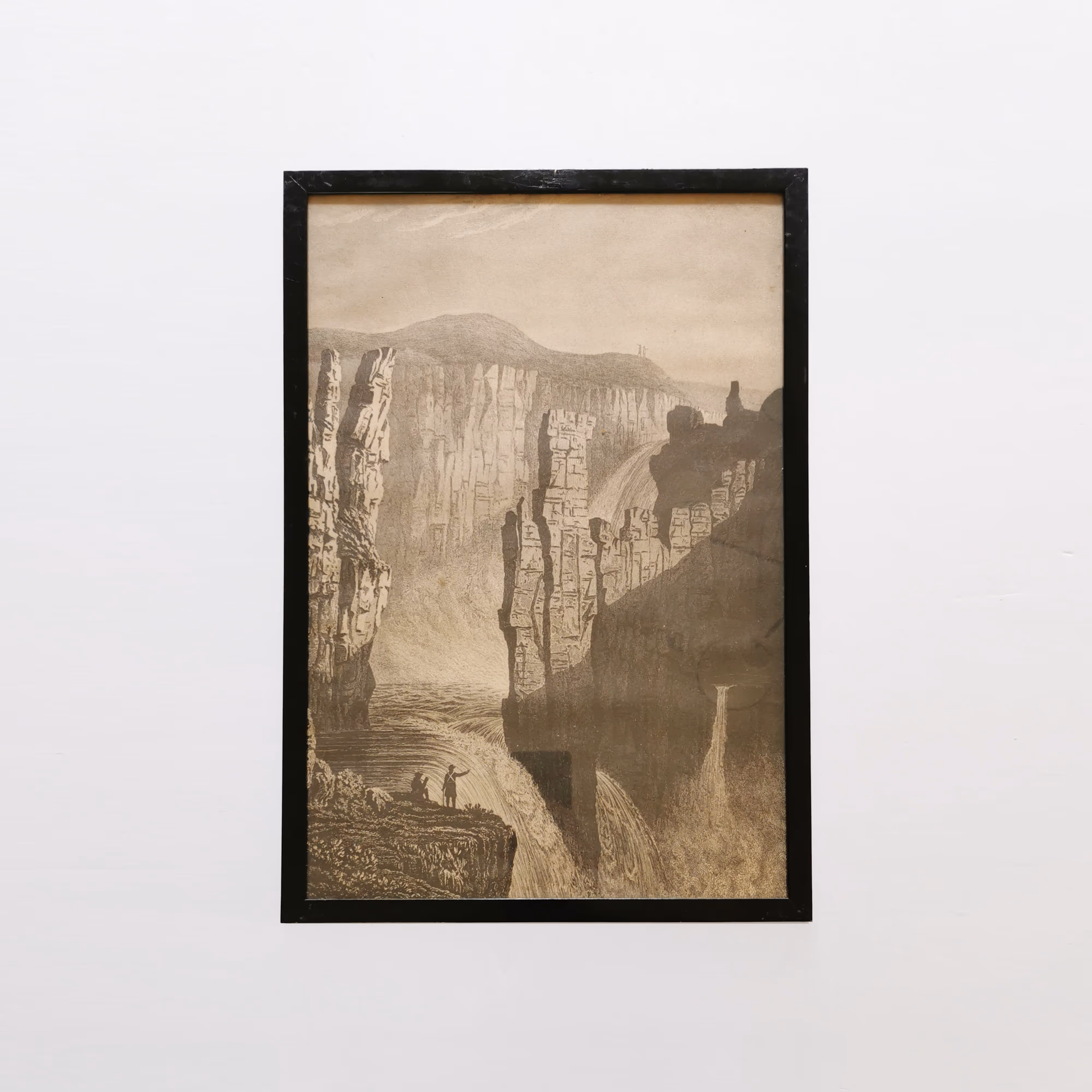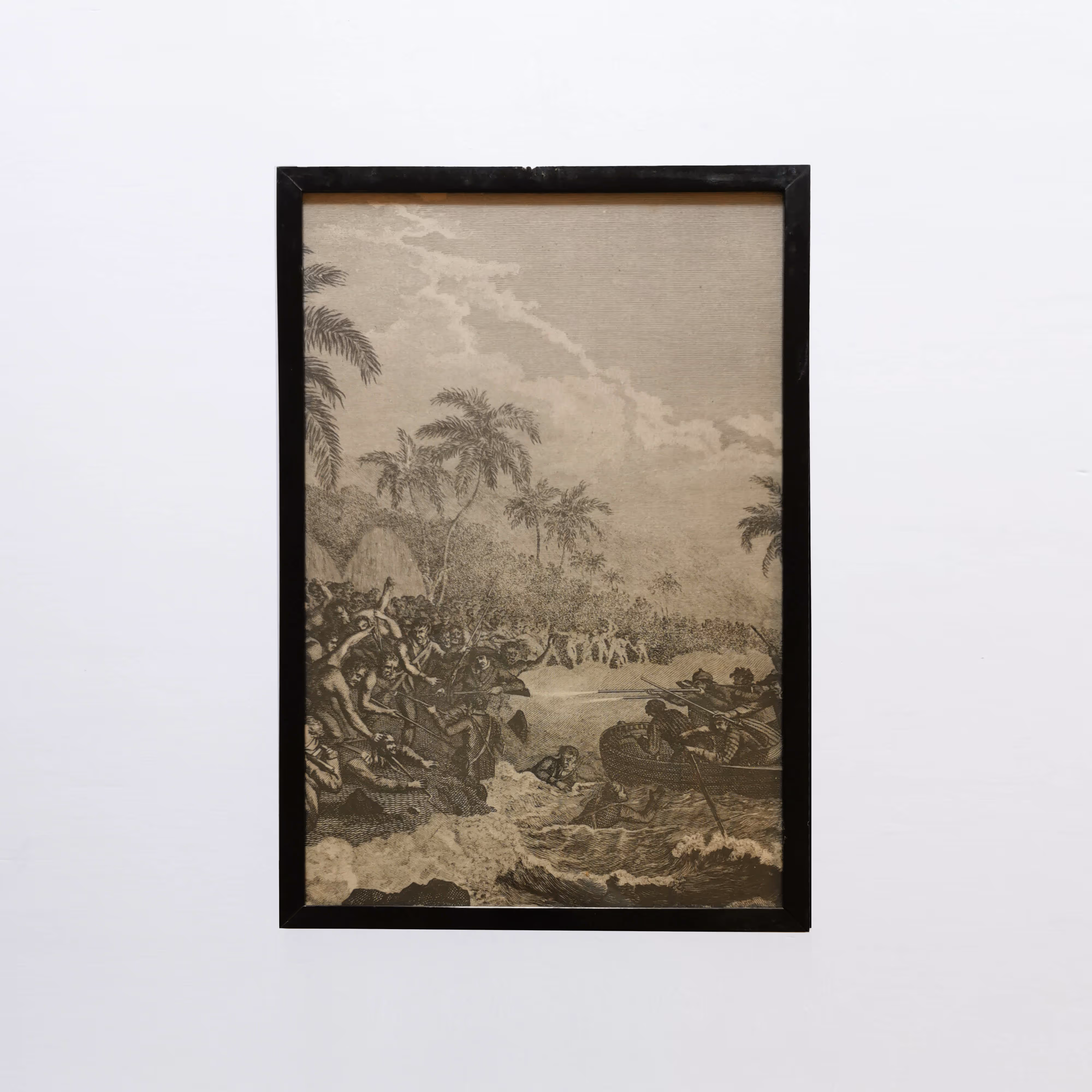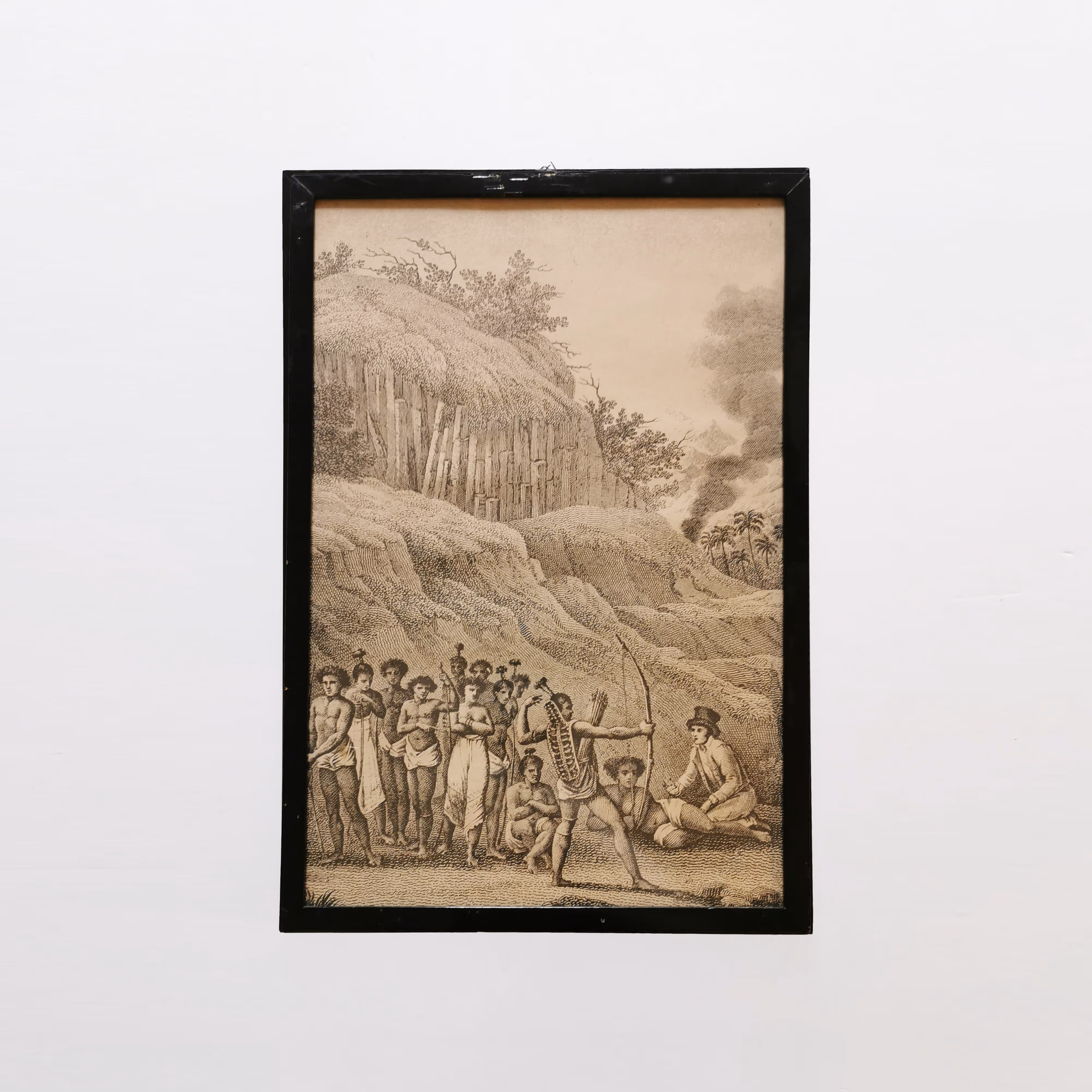 Group of 12x sepia prints based on late eighteenth century engravings of ethnographical and geographical interest. Framed in basic black plastic frames.