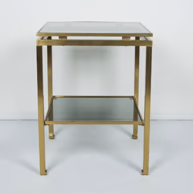 A brushed brass 2-tiered side table by Guy Lefevre for Maison Jansen