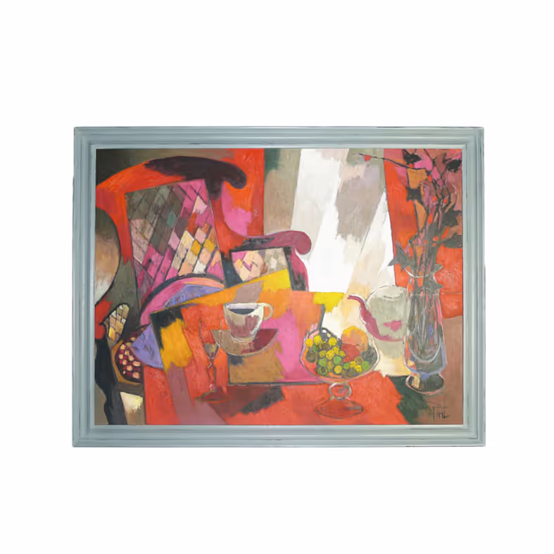 A large oil on canvas depicting an interior scene by Pierre Pivet.