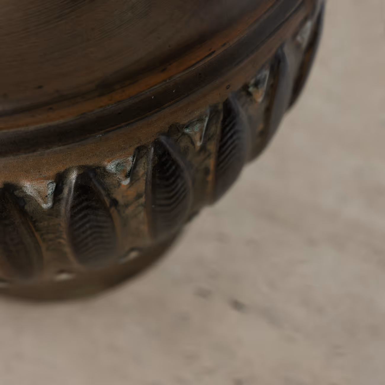 A table lamp with substantial ceramic base by Jean de Lespinasse (1896-1979). Matt brown glaze.