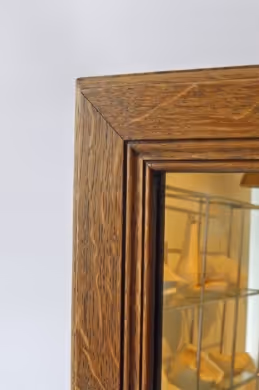 A large oak framed sectioned mirror with nine original mirror plates and studs.