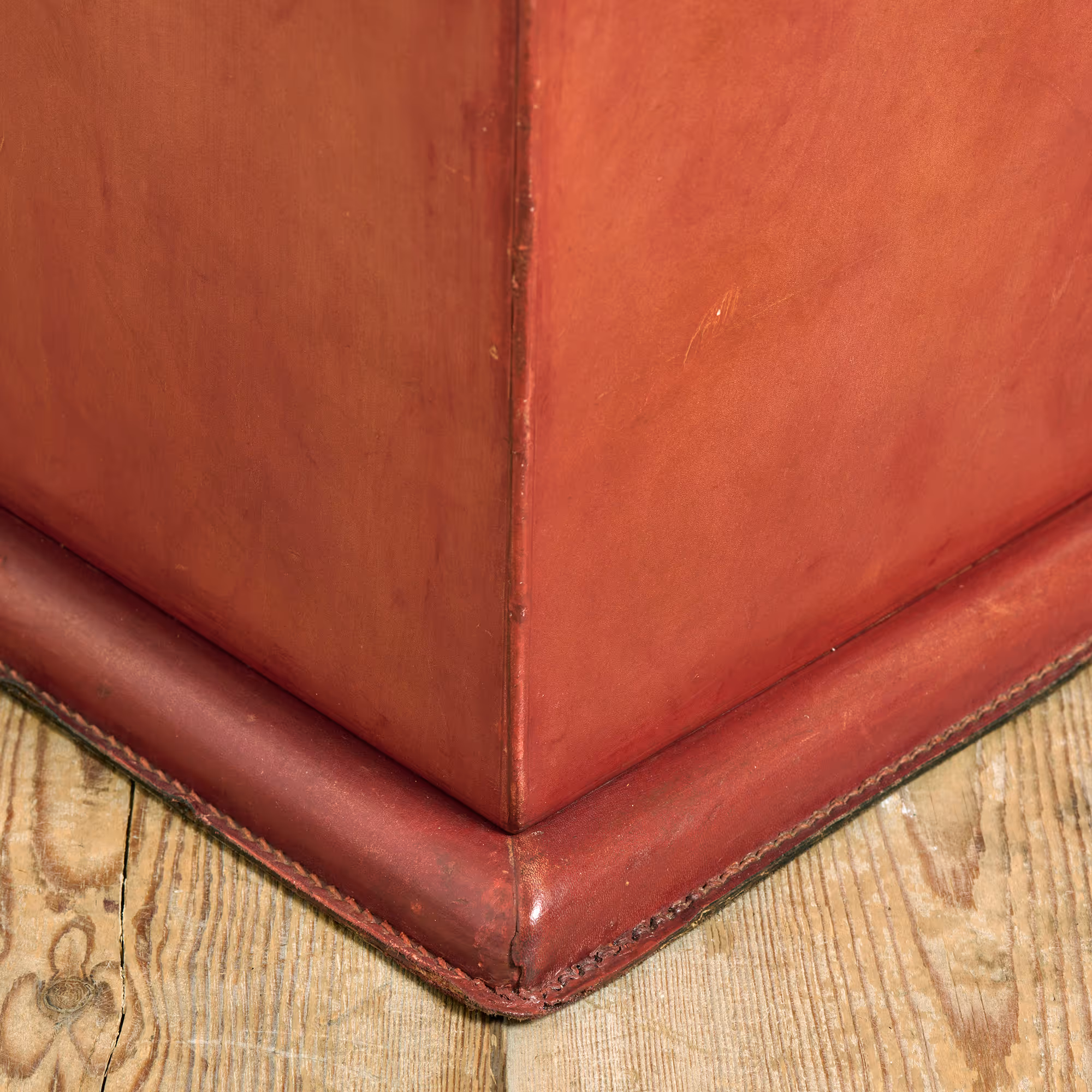 Chic stitched red leather waste paper bin. Wonderful patina, very good condition.