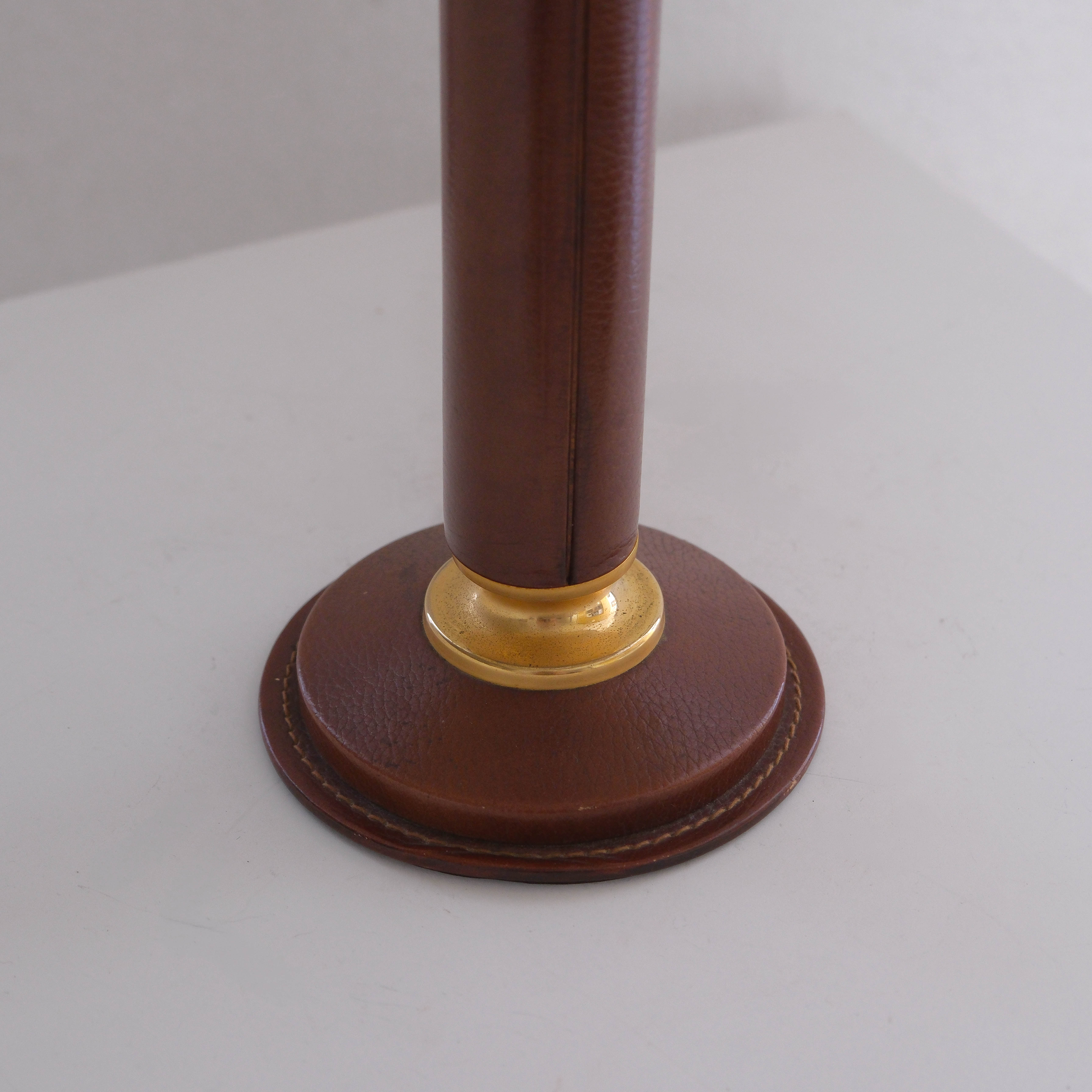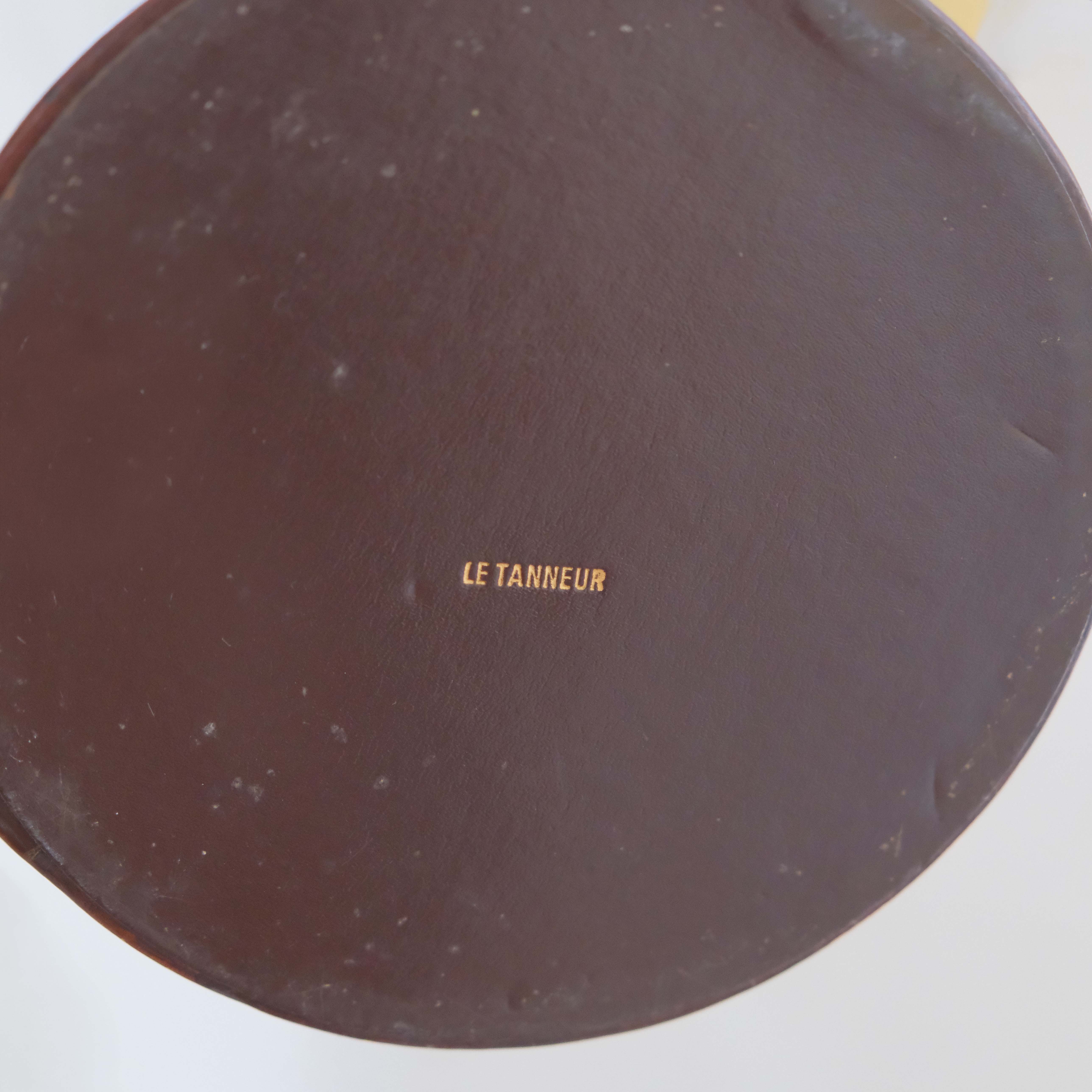 Tan leather table lamp by Le Tanneur