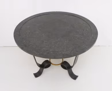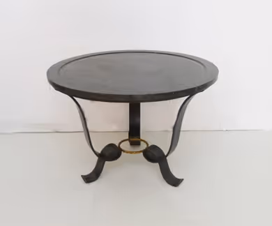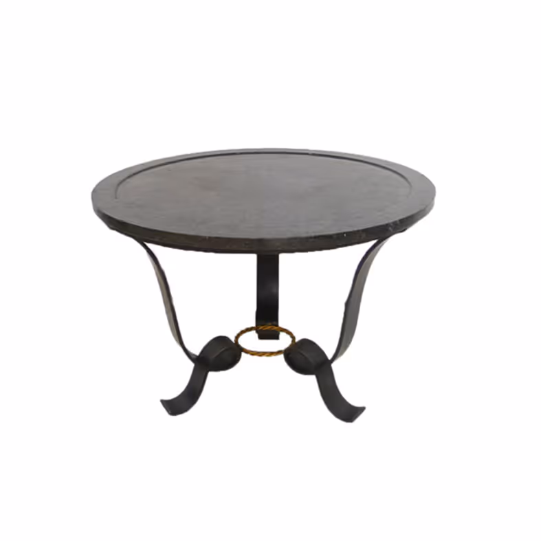 A cast iron guéridon in the manner of Raymond Subes. Grey marble top.