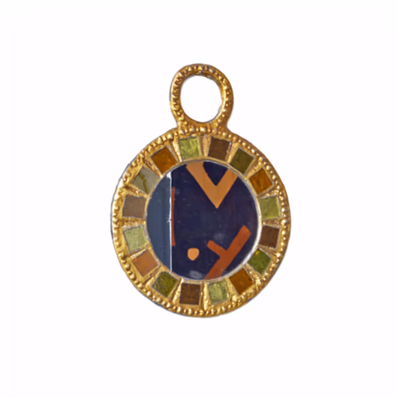 A small circular gilt metal and glass tiled mirror.