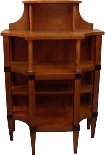 A small neoclassical bookcase or étagère with 5 shelves. Fruitwood veneer and ebonised details.