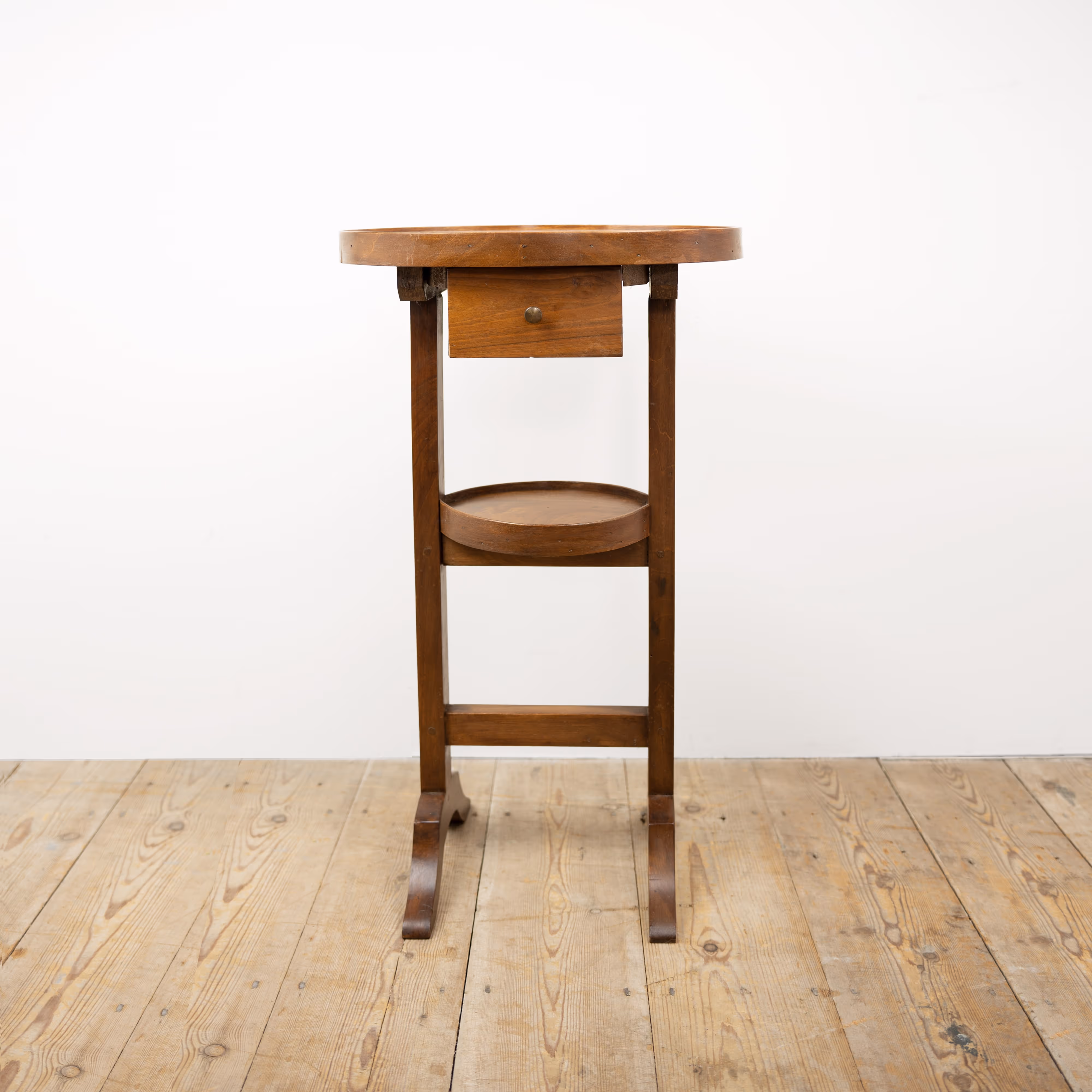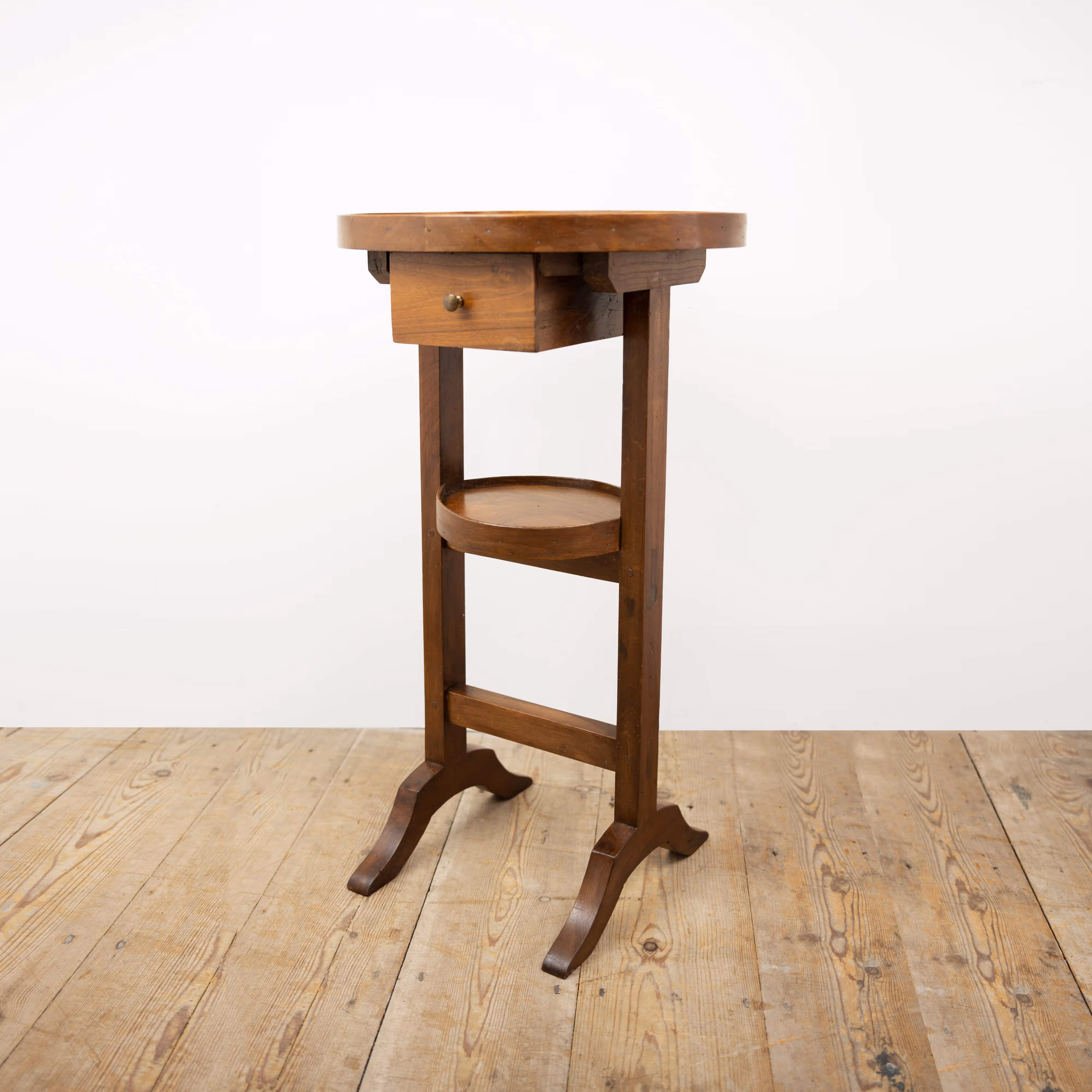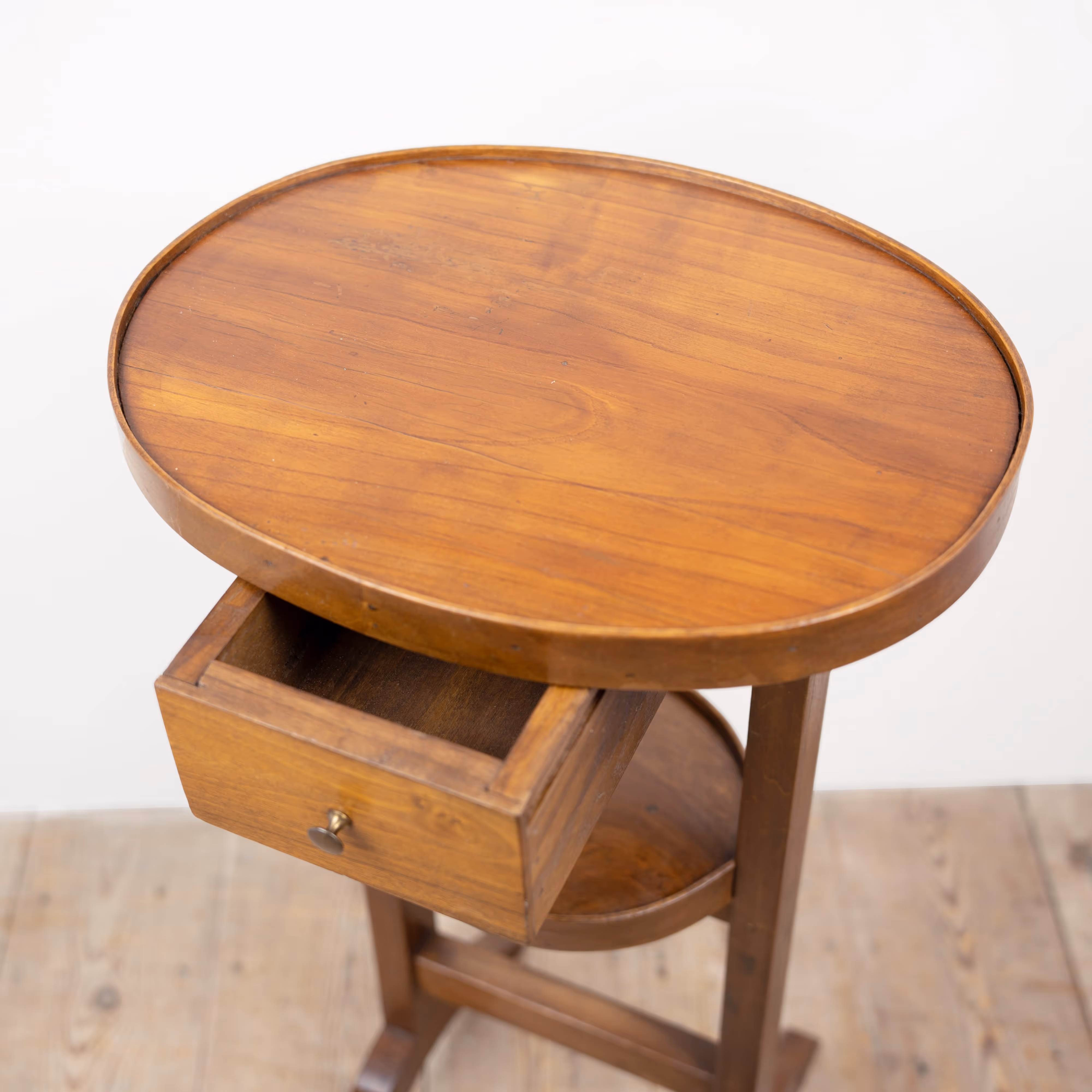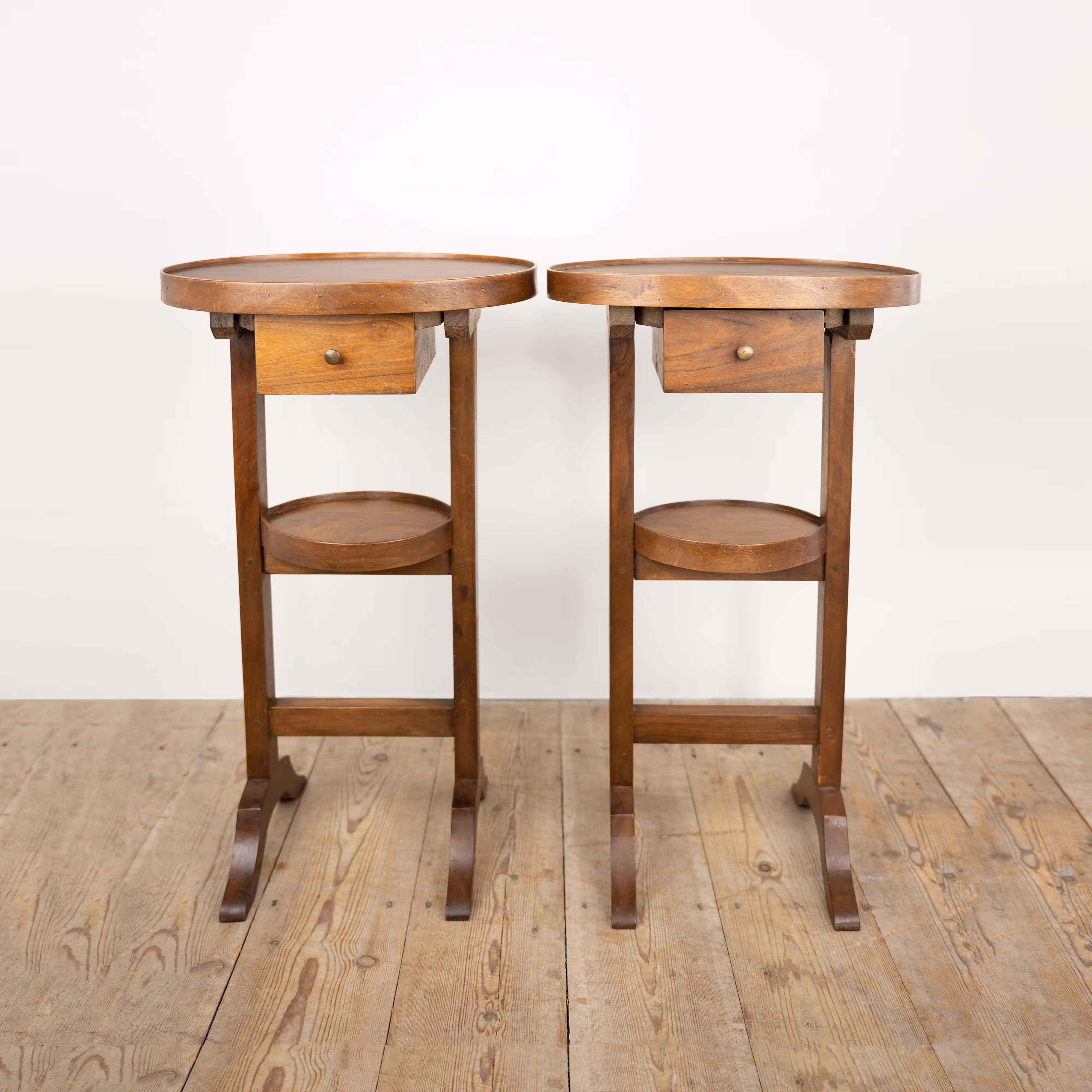 Pair of two-tiered bedside tables with oval tops and drawers.