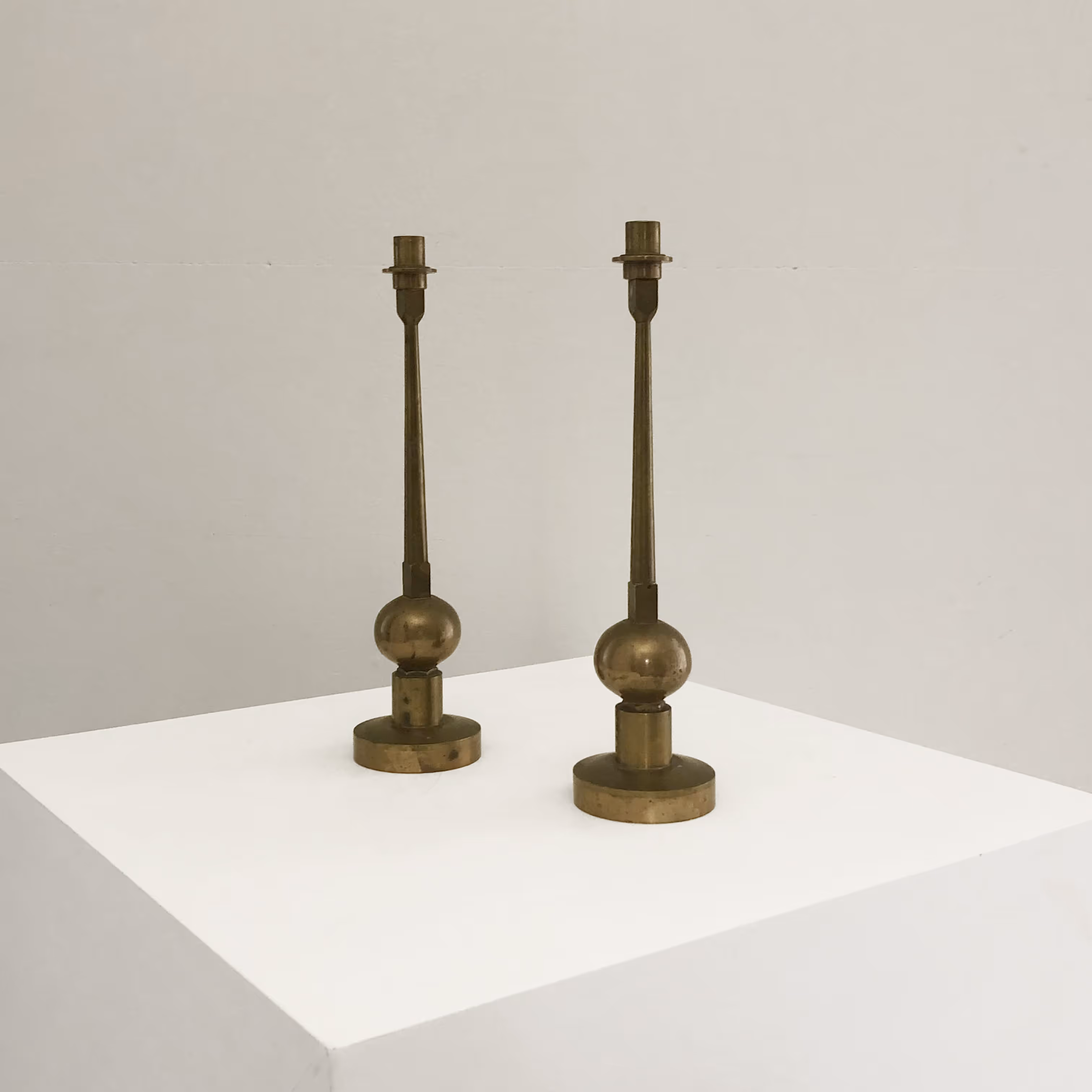 Pair of elegant brass candlesticks in the manner of Sigurd Persson (Sweden, 1914-2003)