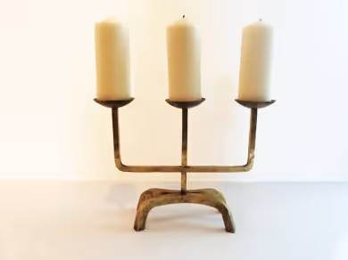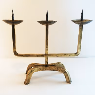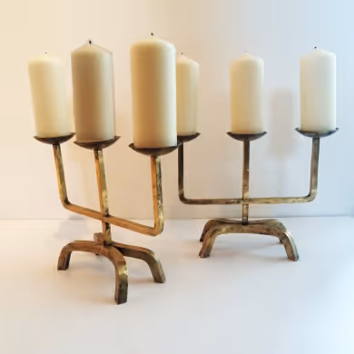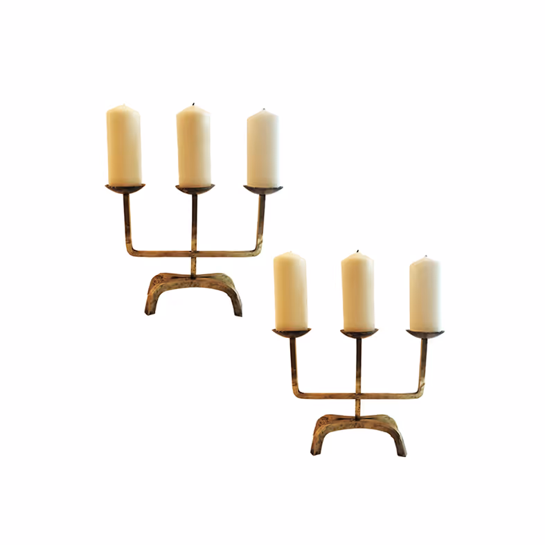 Pair of hammered bronze candelabras by Maison Chevillard.