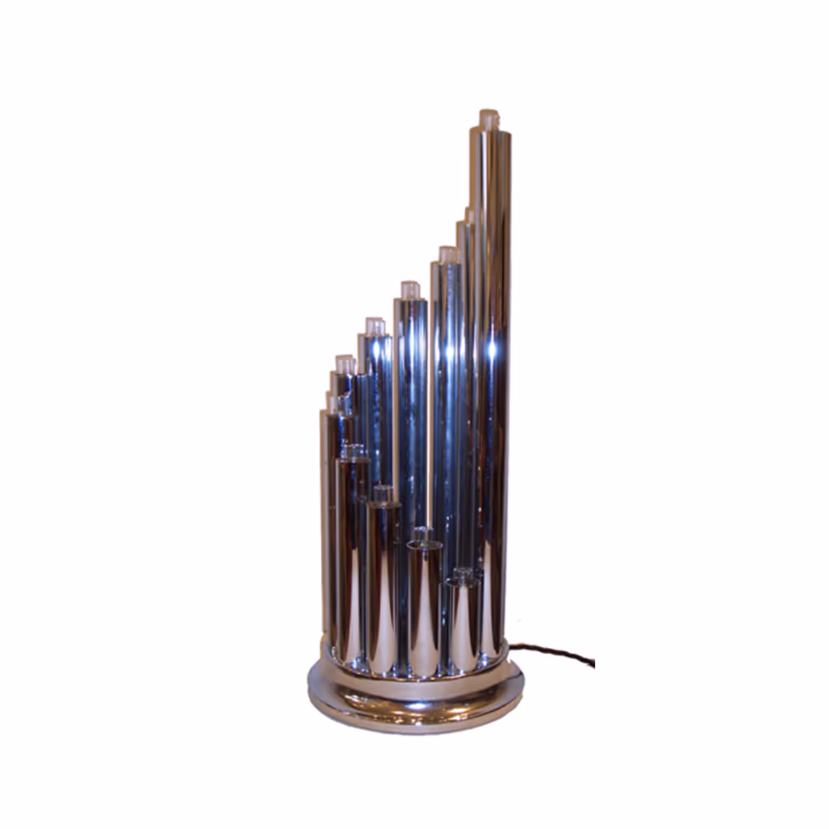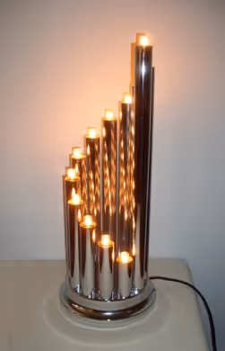 A pair of unusual table lamps, each made of 12 chrome tubes all fitted with small 7-Watt bulbs, Newly rewired and PAT-certified