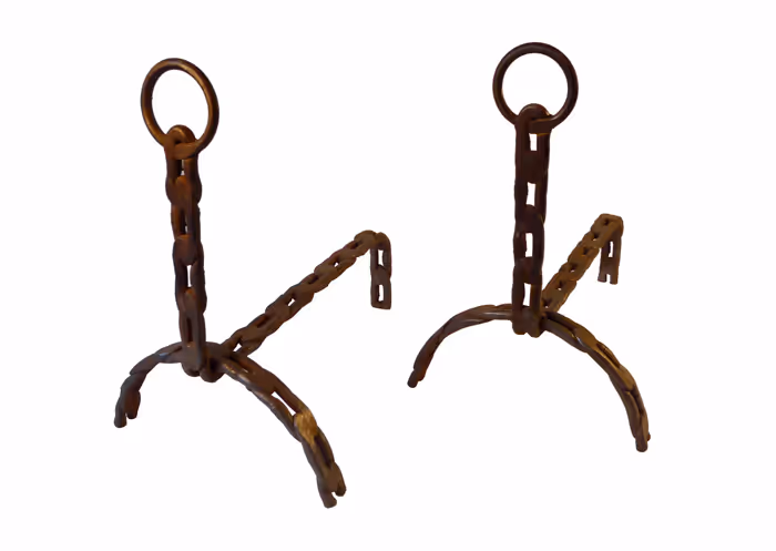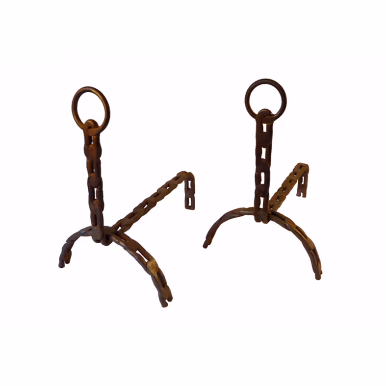 Pair of flat chain cast iron firedogs