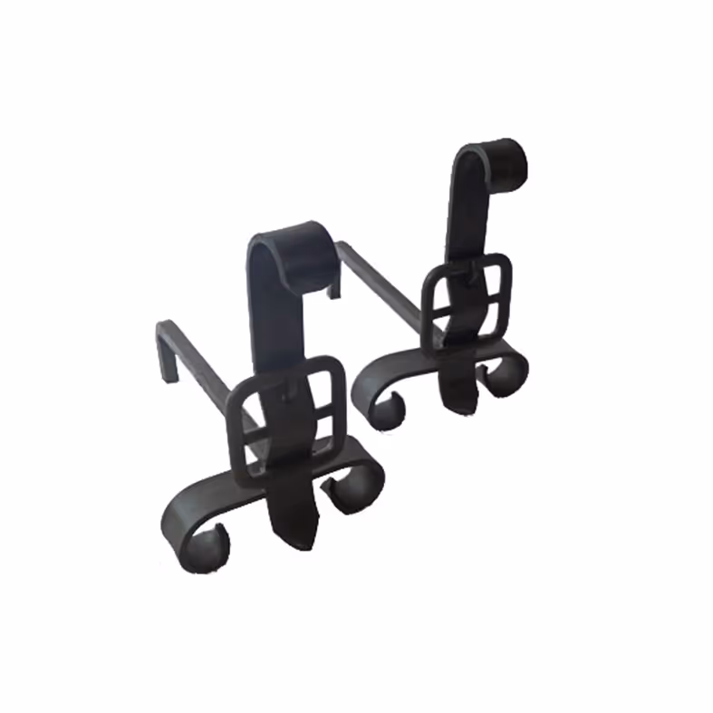 A pair of firedogs in the shape of buckles