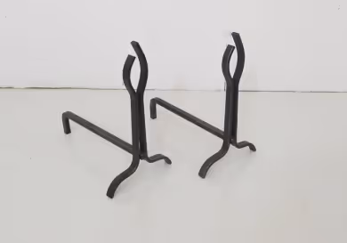 A pair of cast iron firedogs.