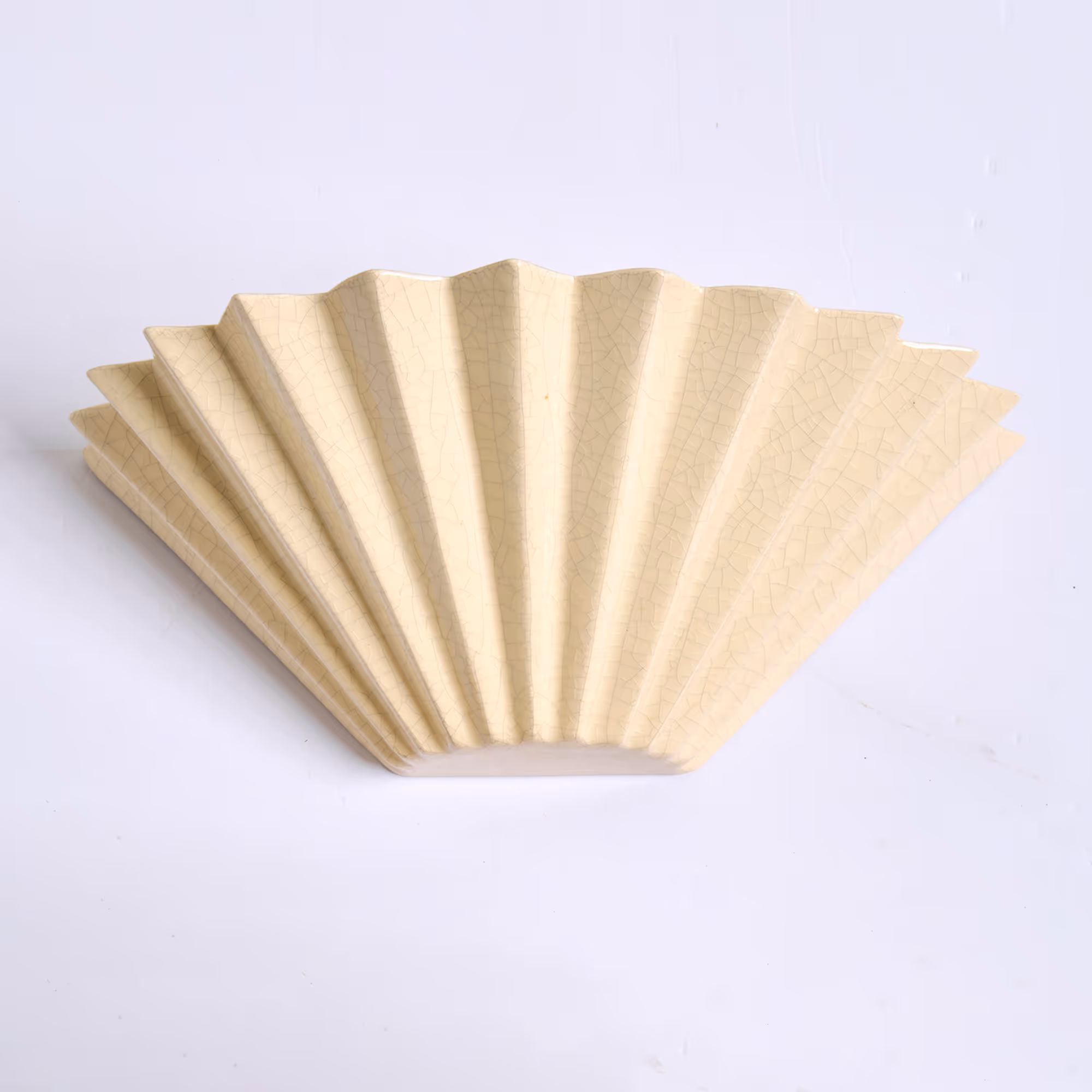 Pair of fluted, cream pottery wall lights. Wonderful crackle glaze.