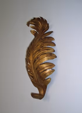 A pair of wall lights in the shape of leaves. These lights of great proportions initially come from a restaurant in Paris.