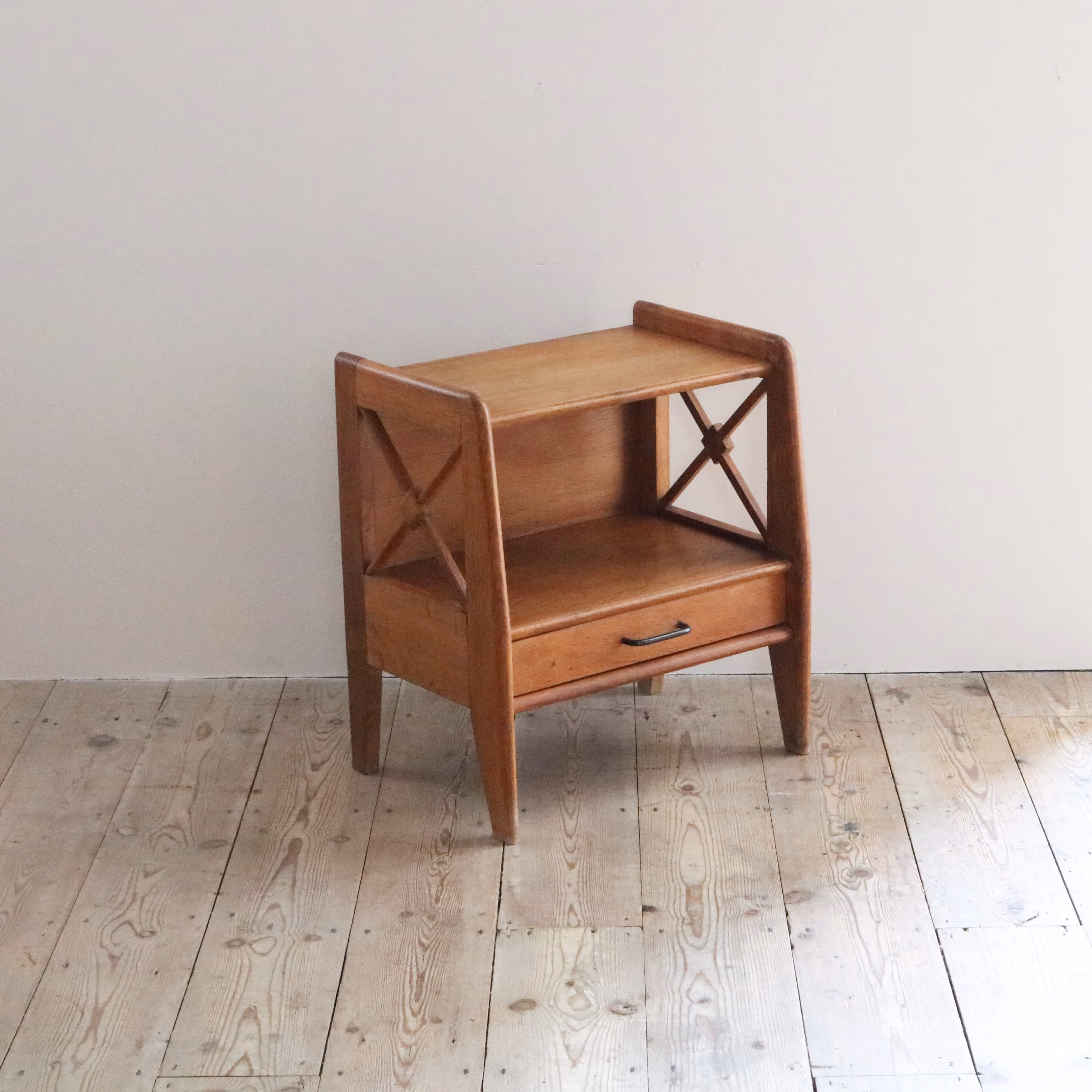 A pair of oak night stands by Jacques Adnet.