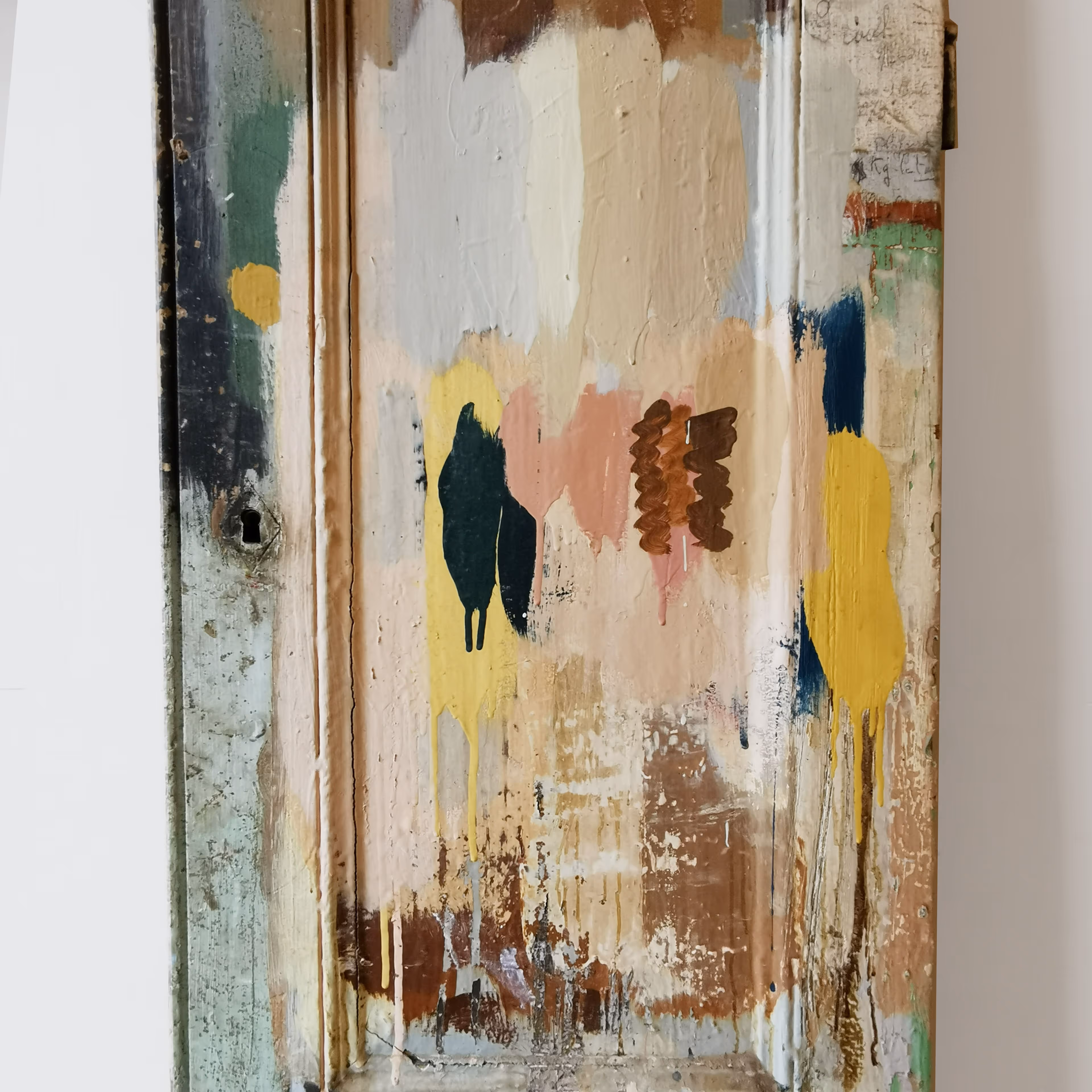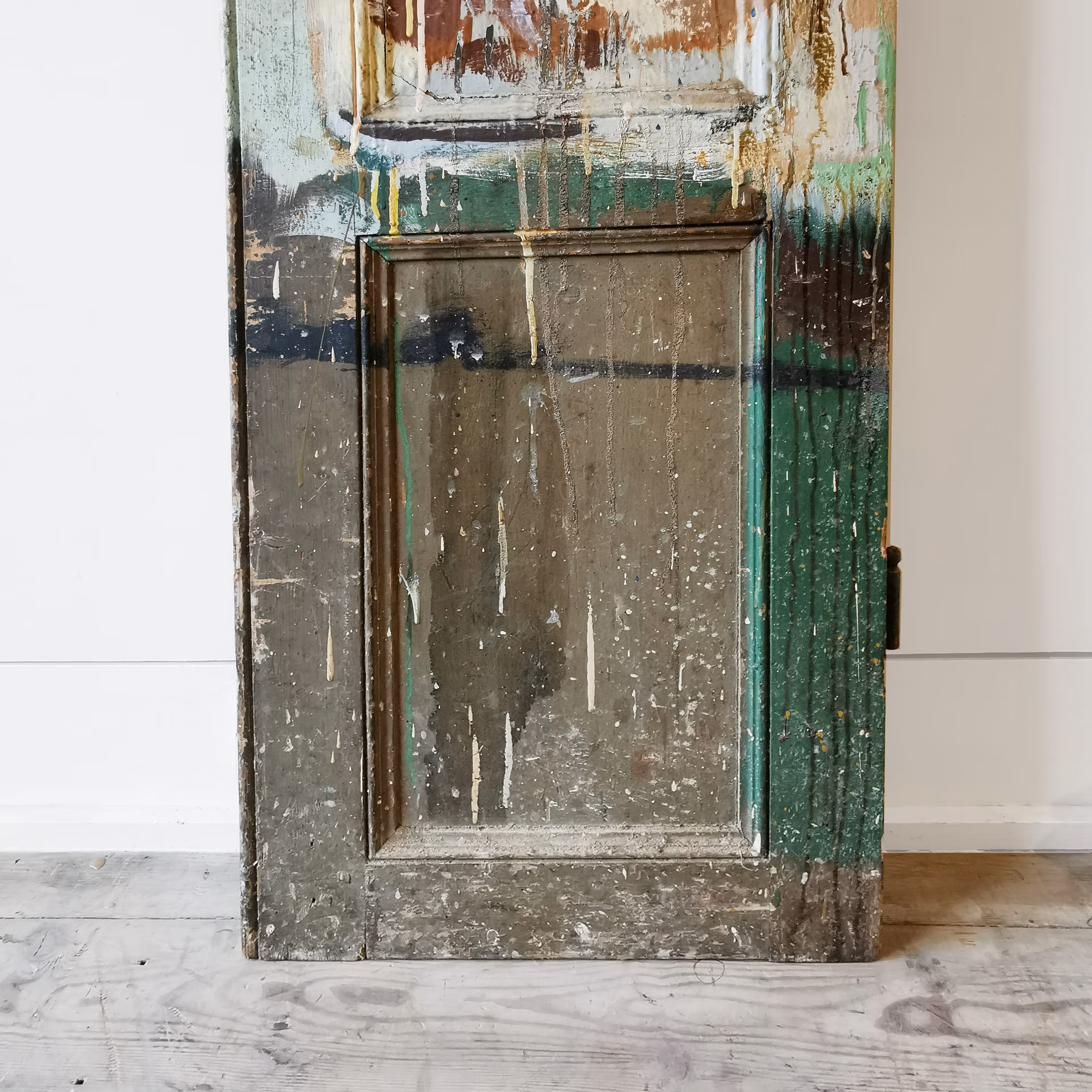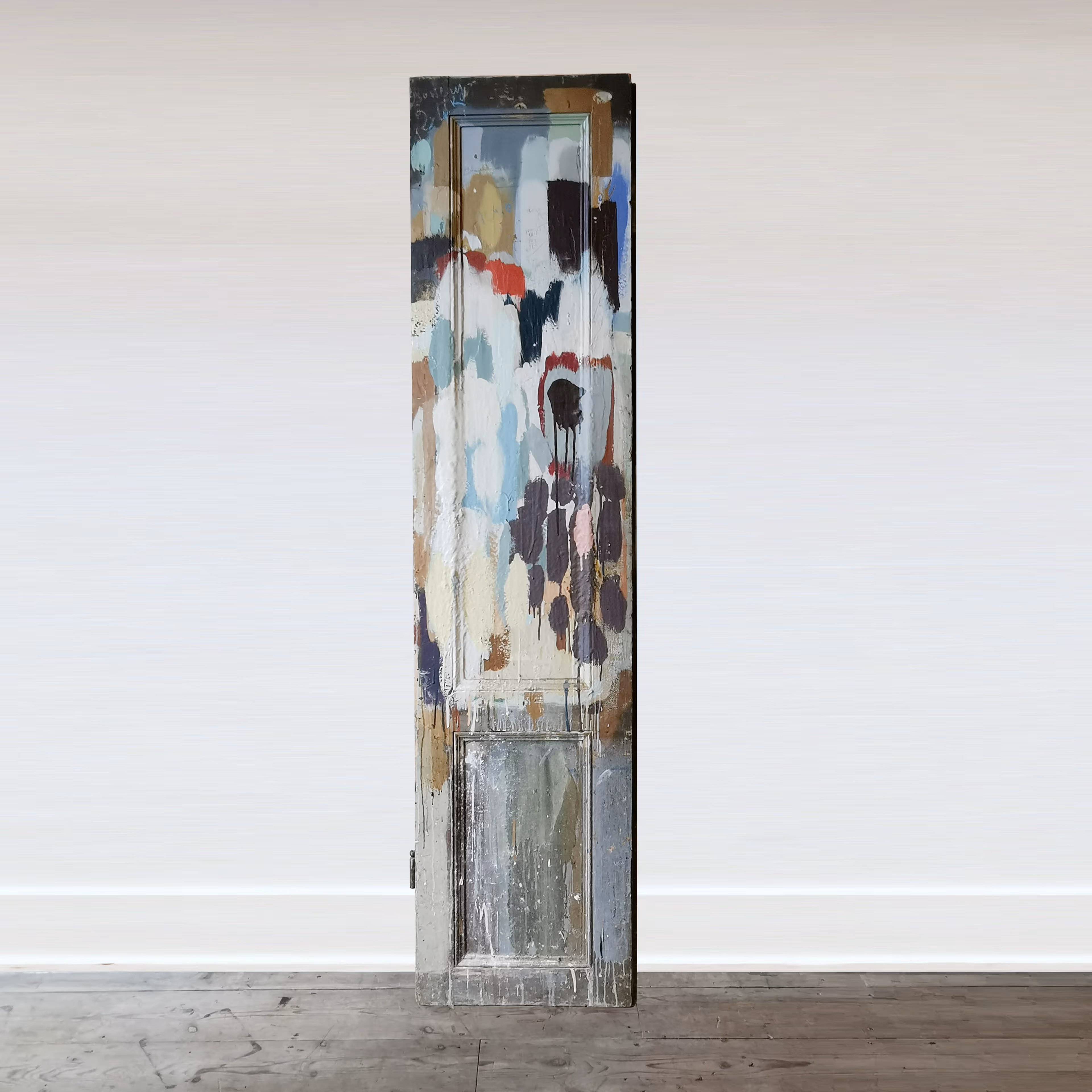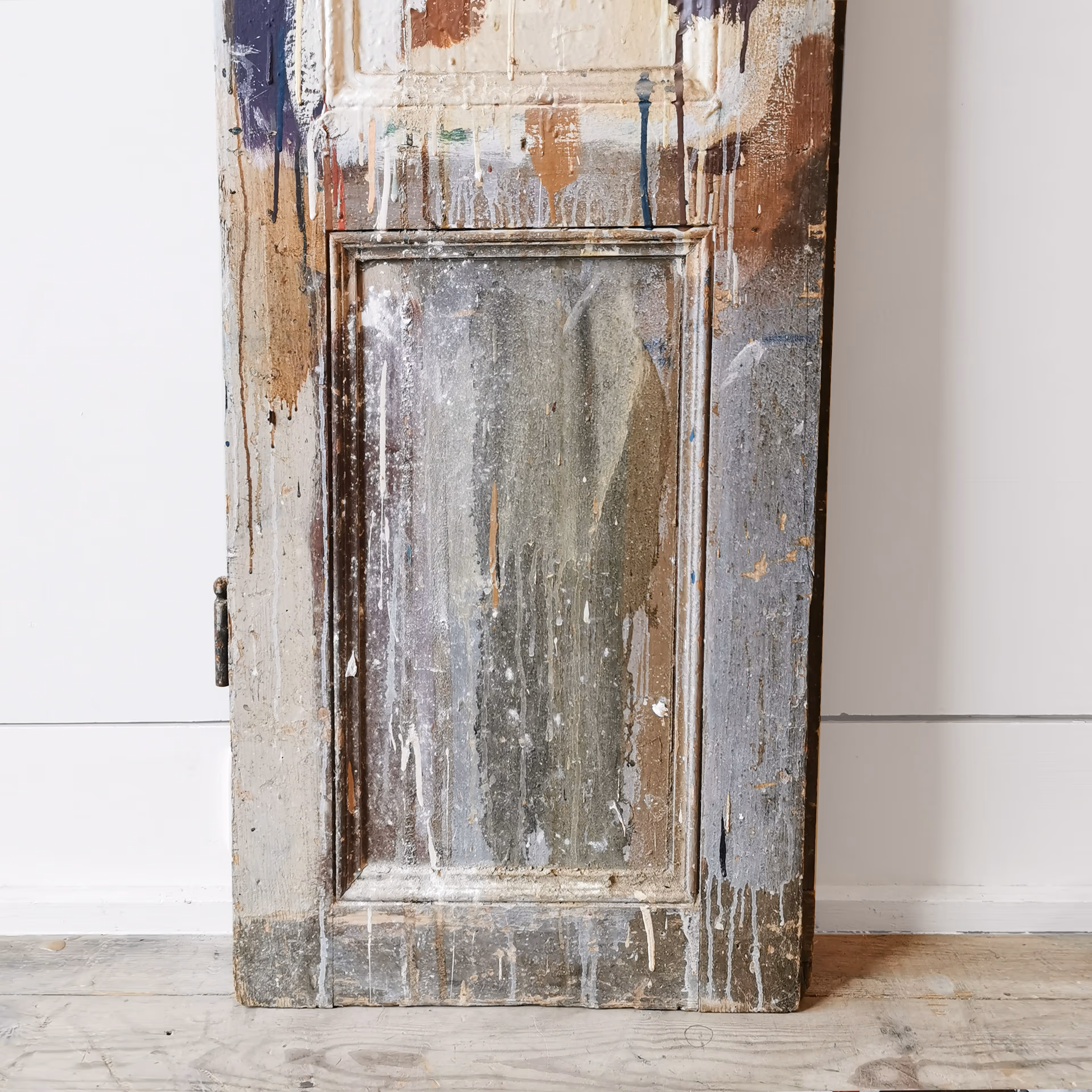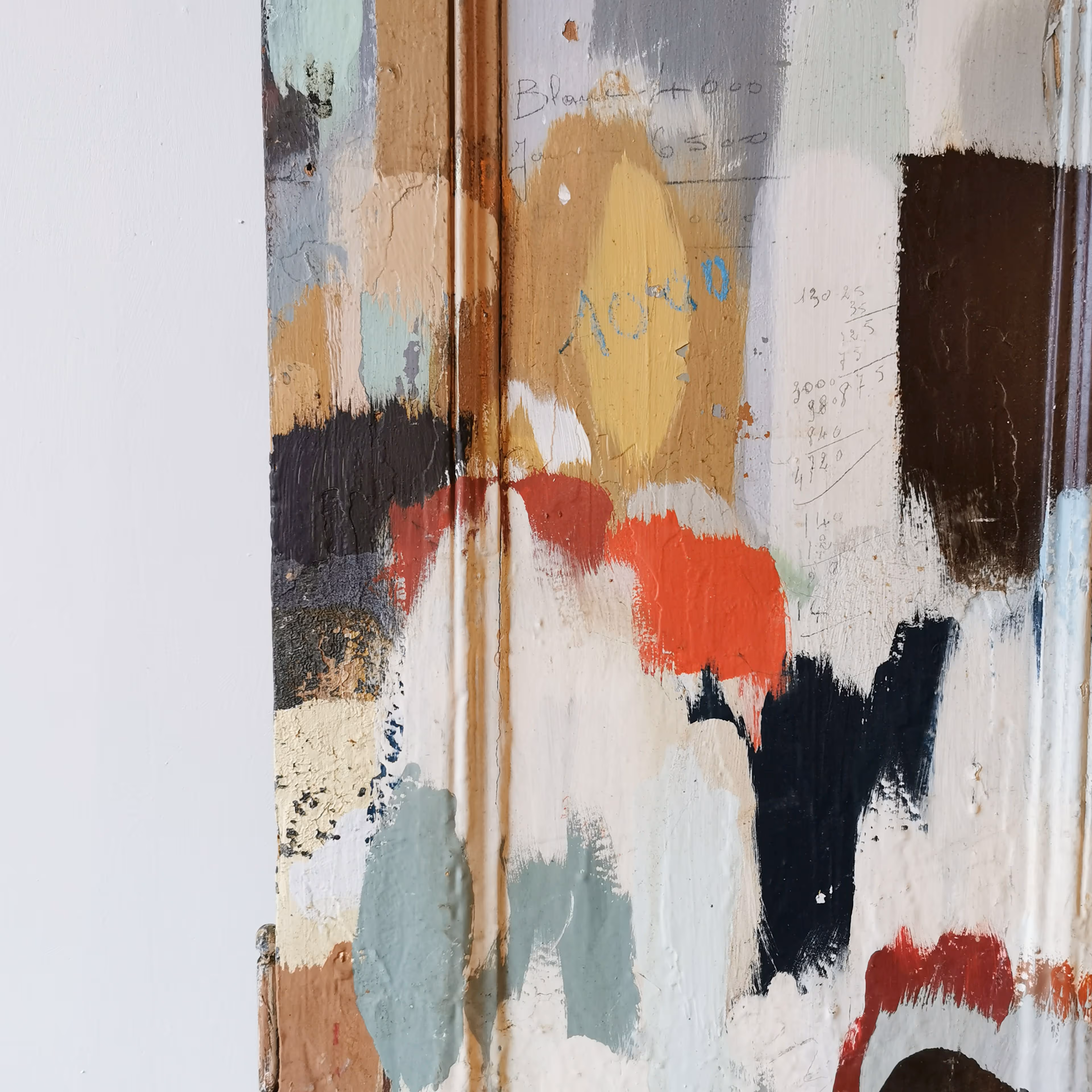 Pair of nineteenth century internal doors with midcentury plaint splatters and graffiti. Originating from an artist's studio in Paris.