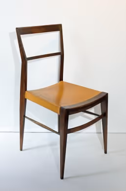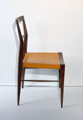 A pair of elegant side chairs in the style of Gio Ponti. Original vinyl seat