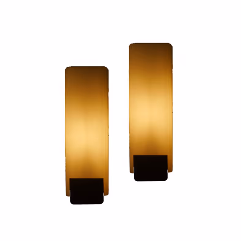 A pair of teak and milk glass wall lights Rewired and PAT certified