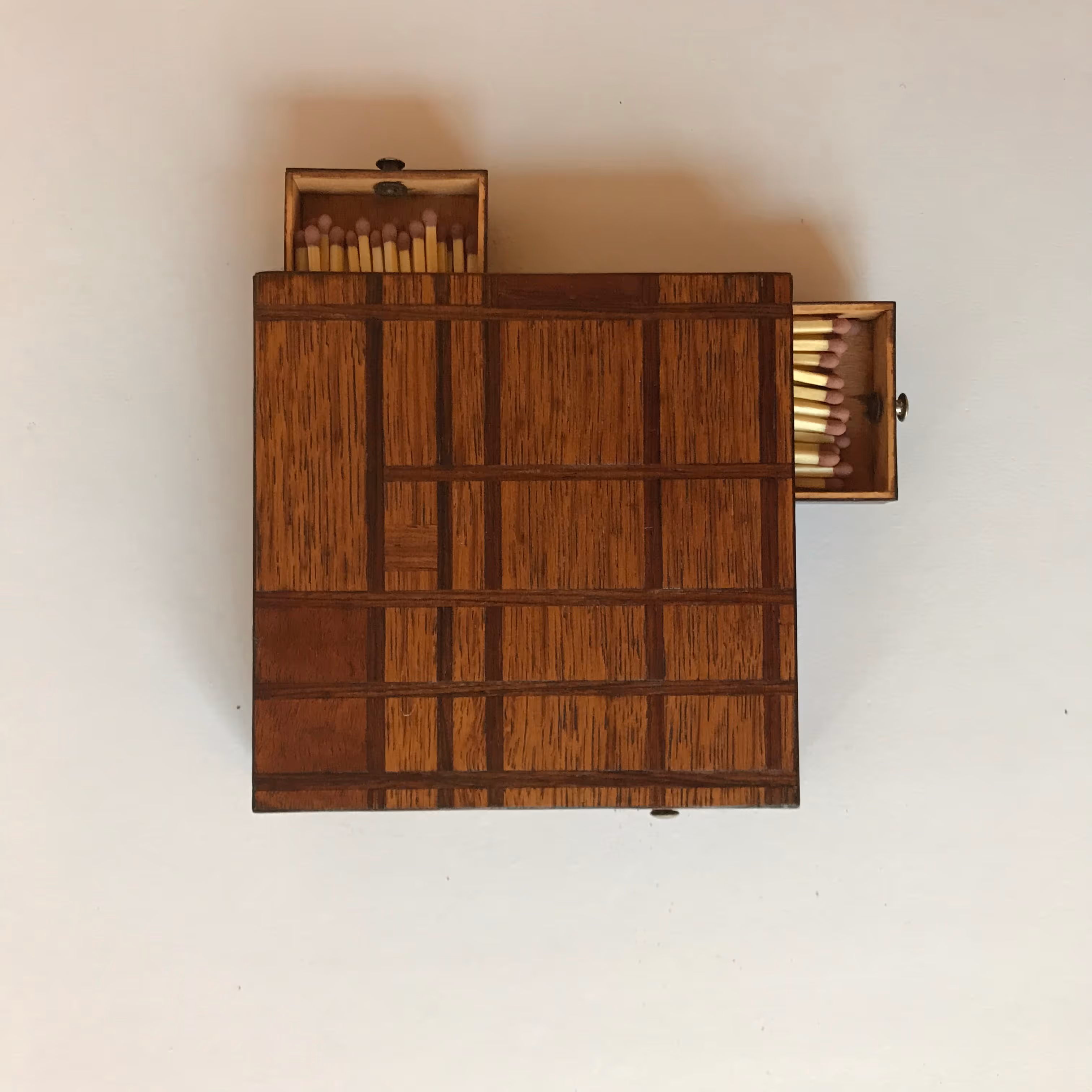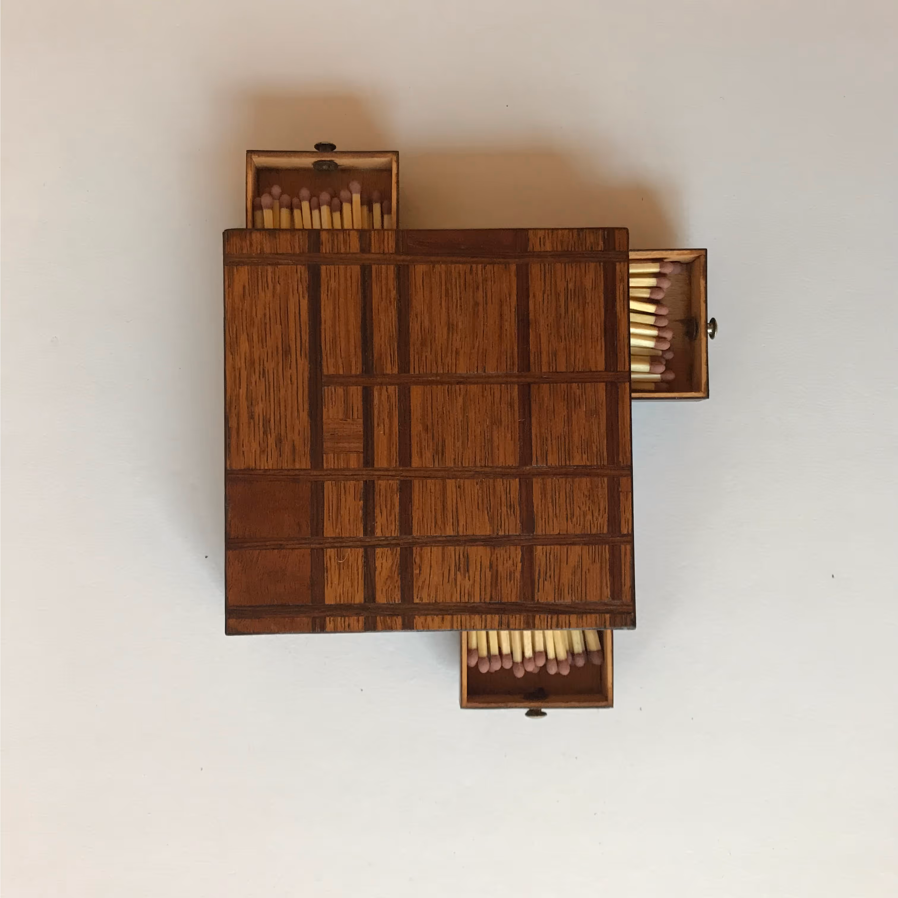 Parquetry matchstick box, 3 working drawers and new strike pad