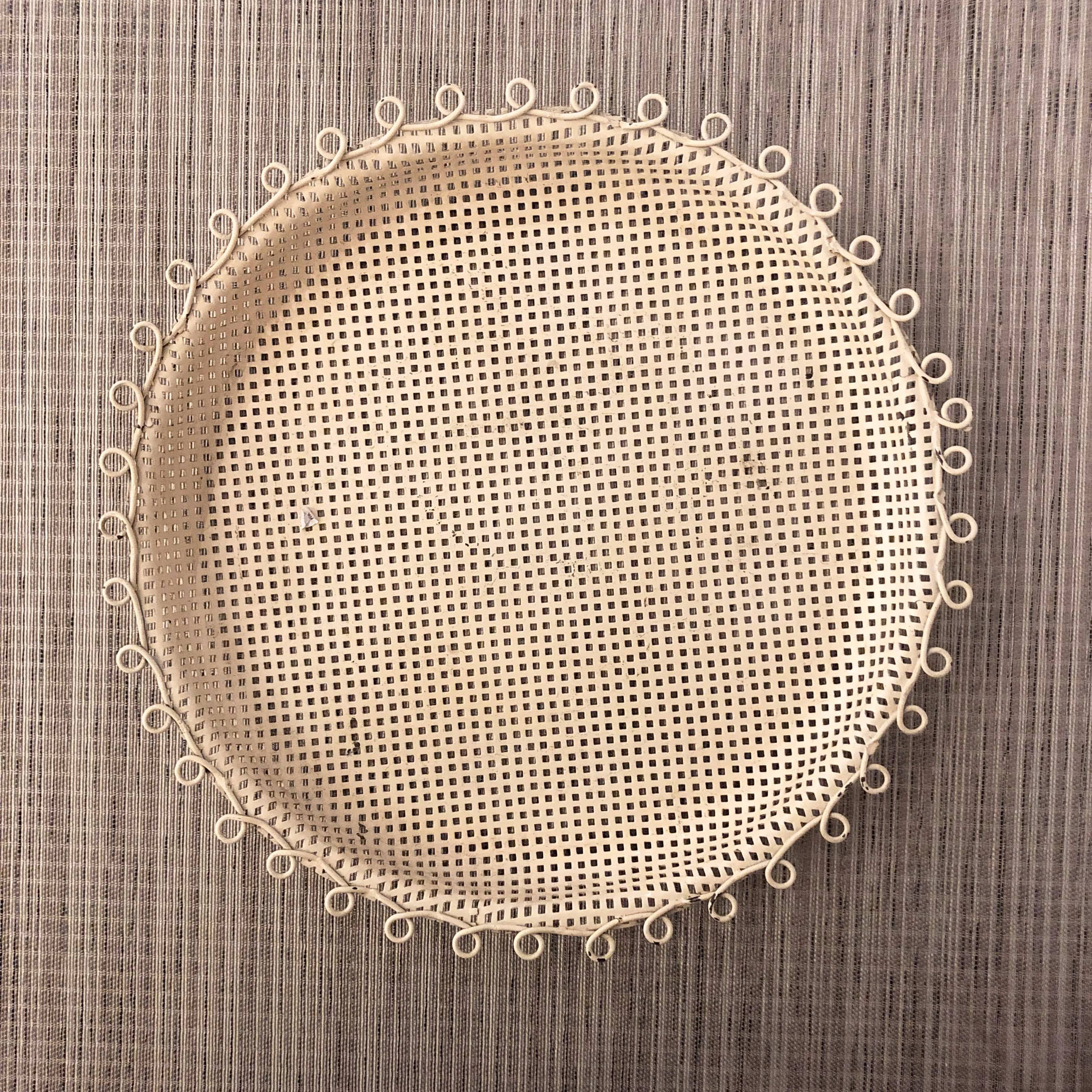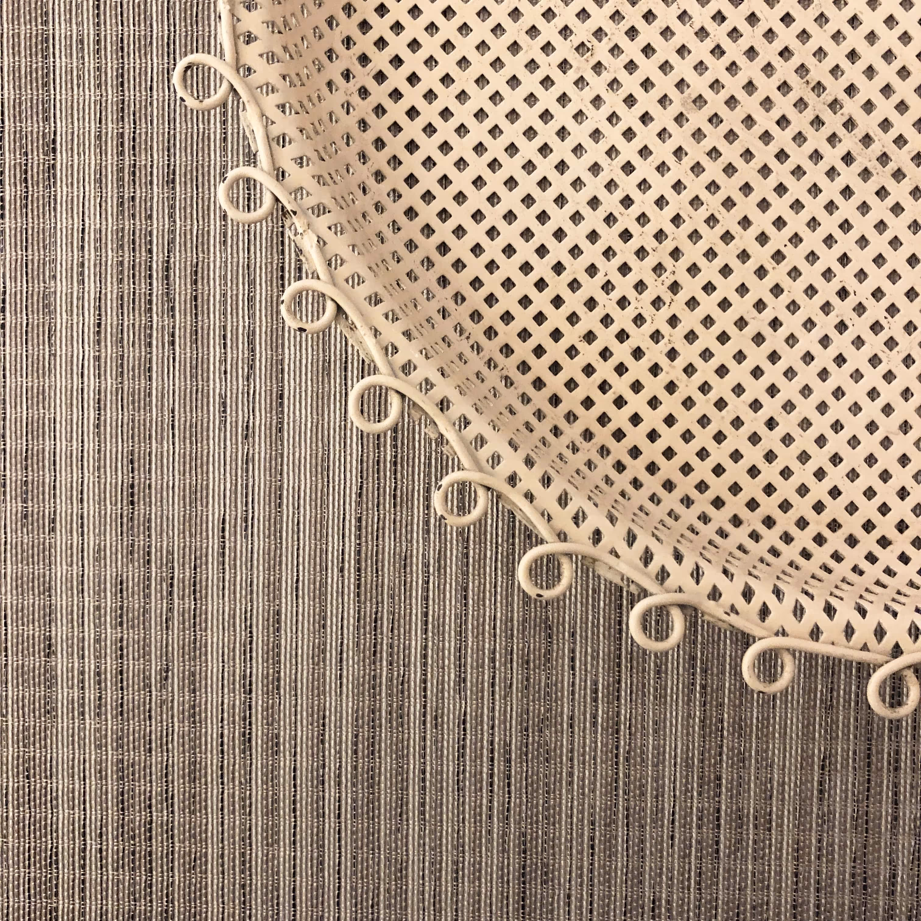 Cream, perforated metal tray in the manner of Mathieu Mategot