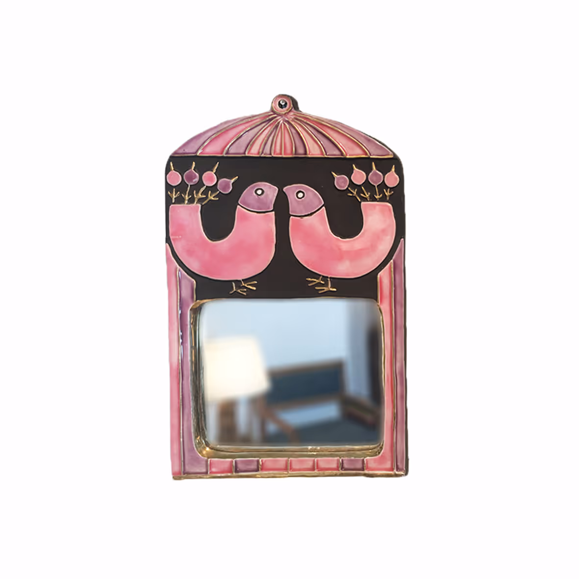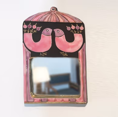 A pottery mirror with bird decor. By Francois Lembo
