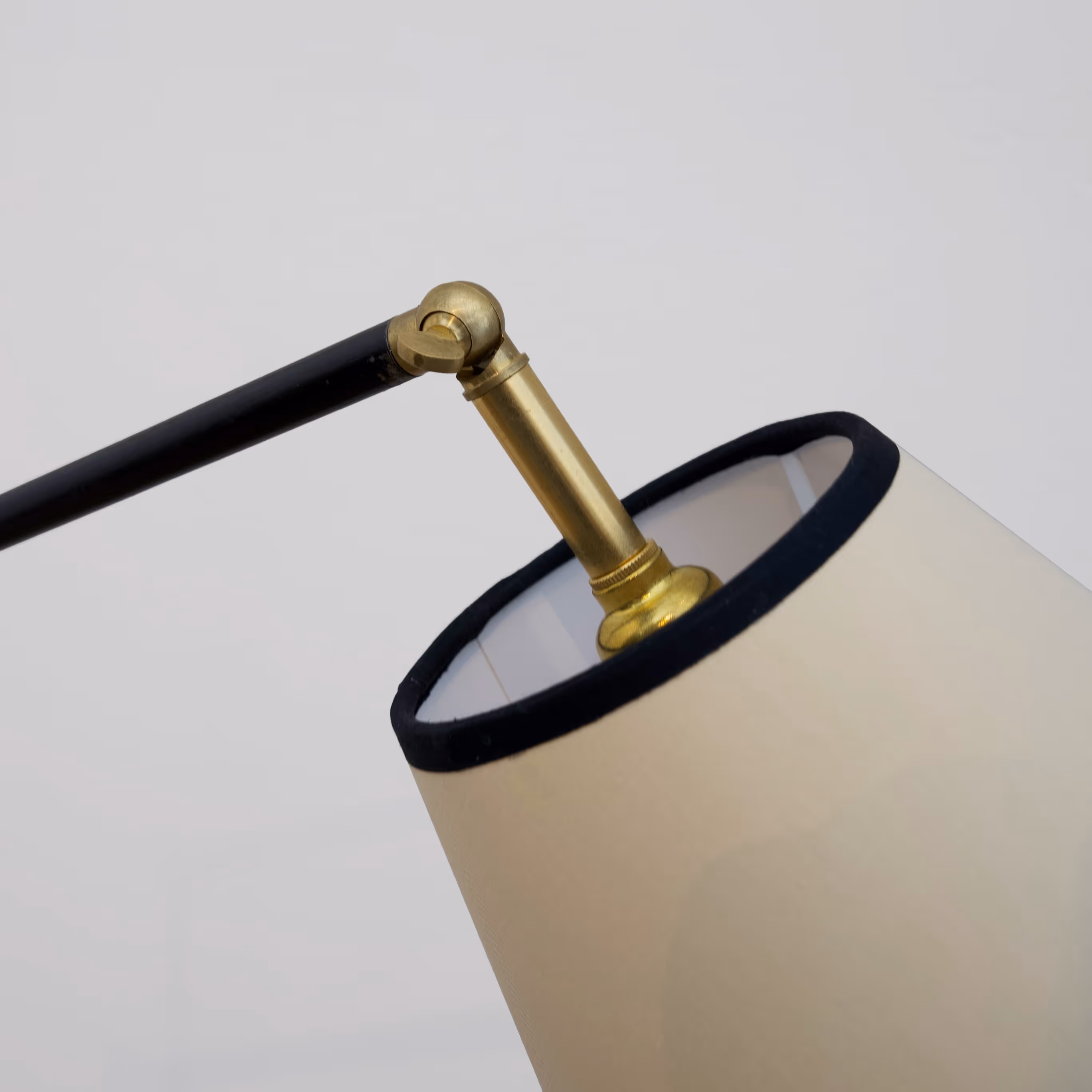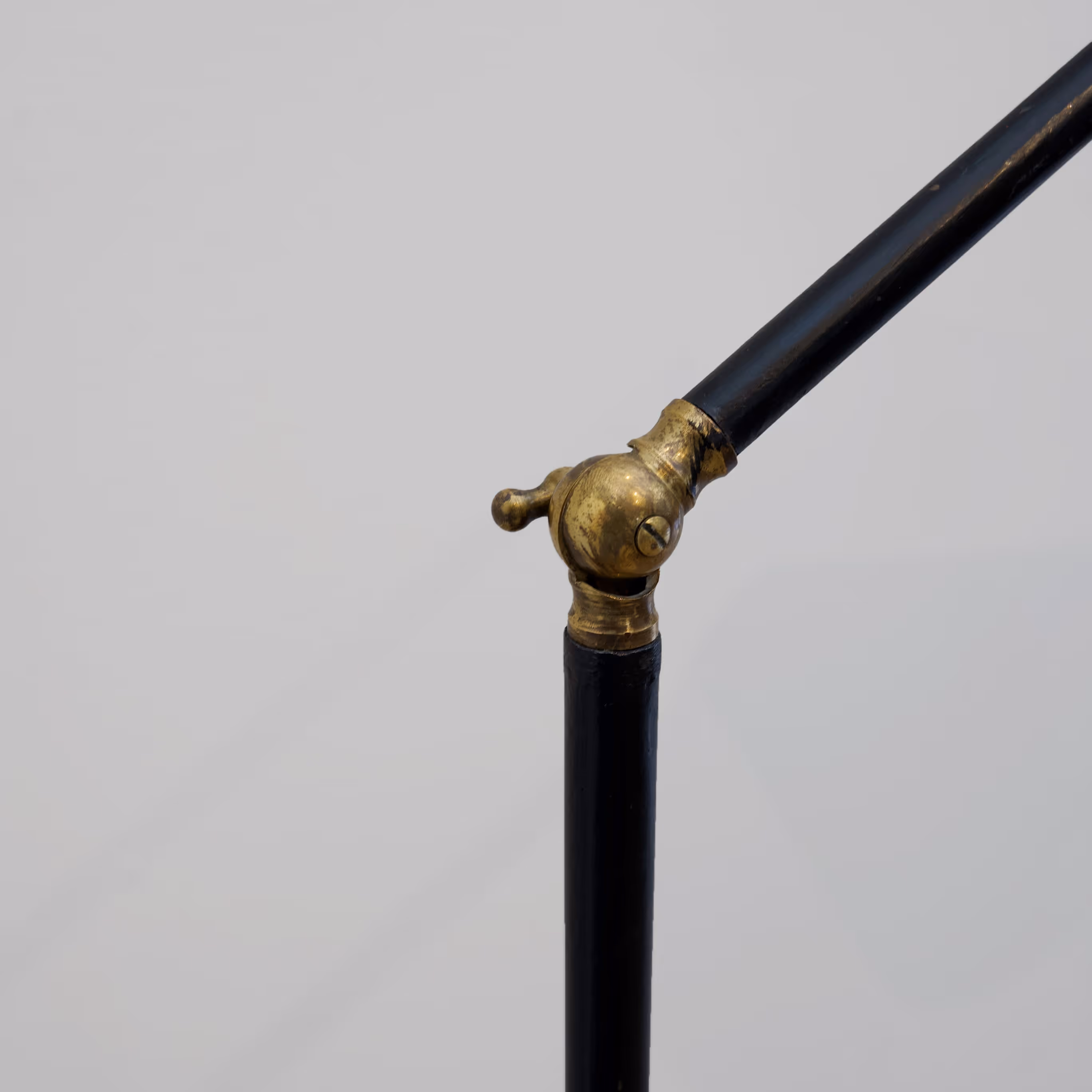 Brass & black metal reading floor lamp with coiled steel base.