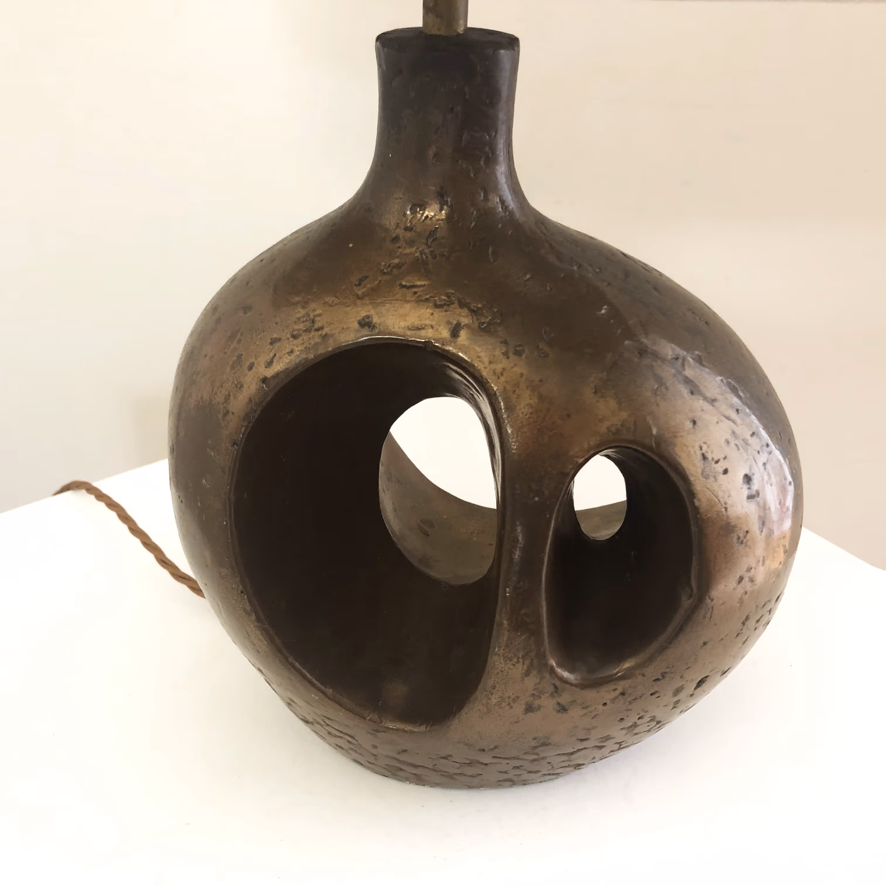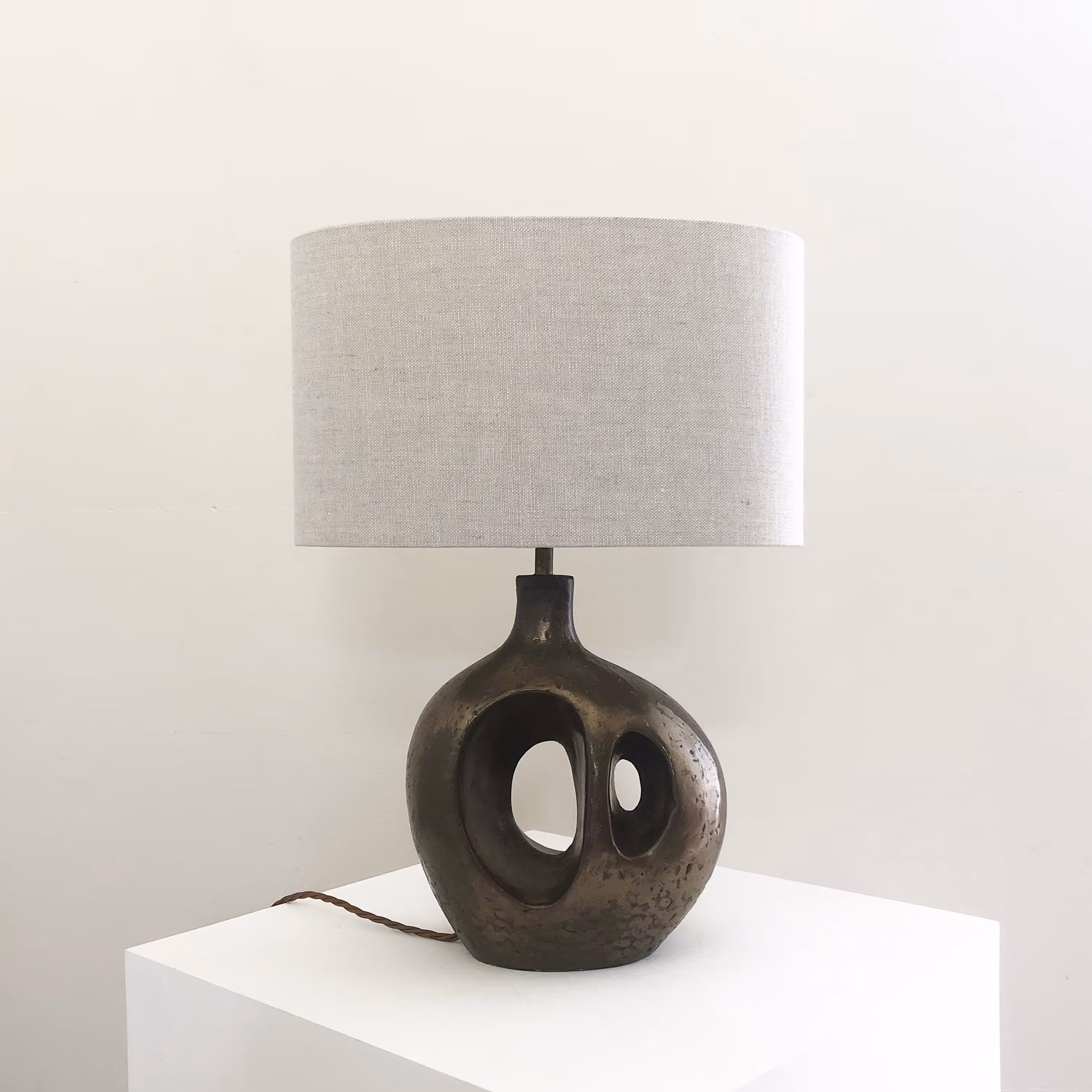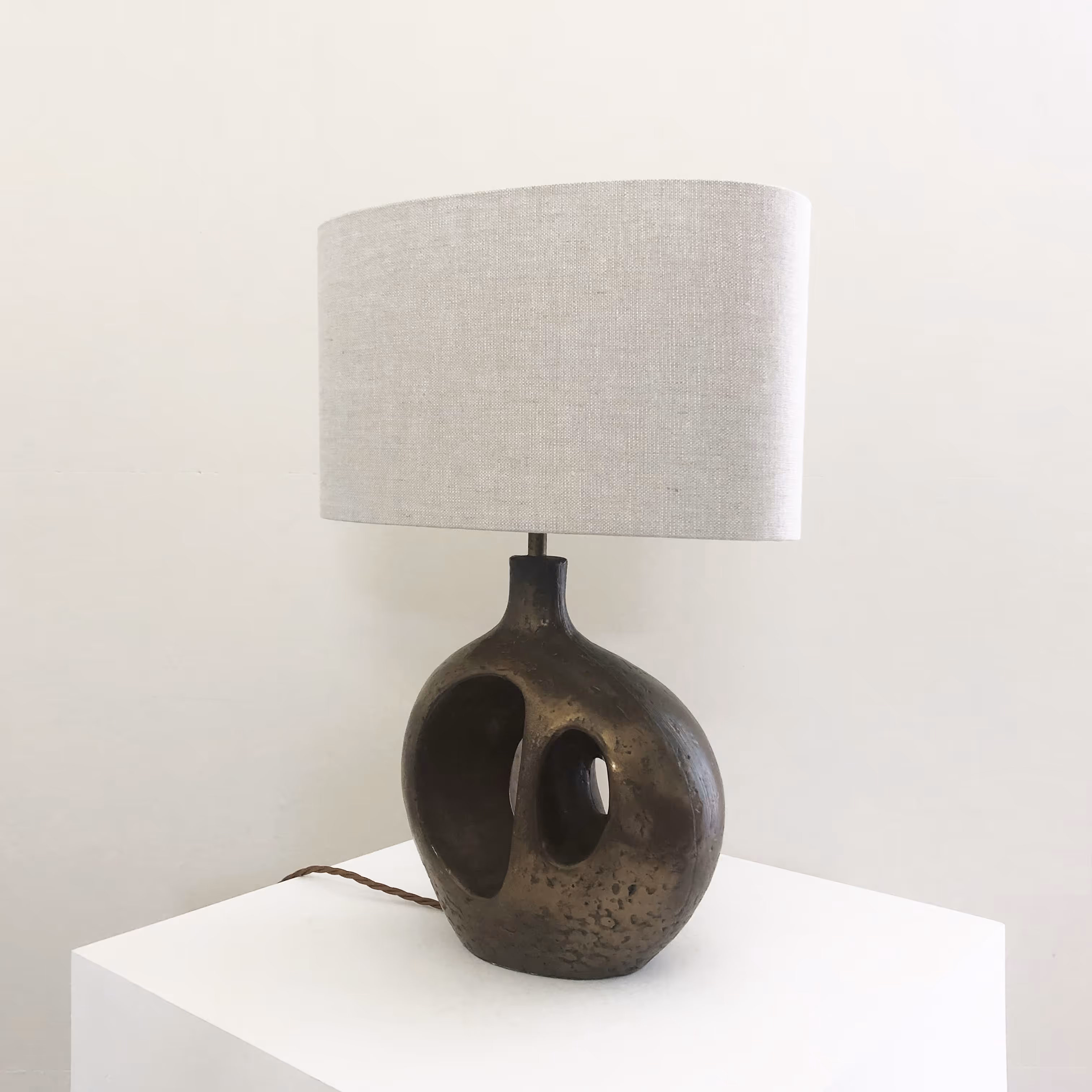 A freeform, bronze-finish table lamp in resin. Design reminiscent of Barbara Hepworth's sculptures.