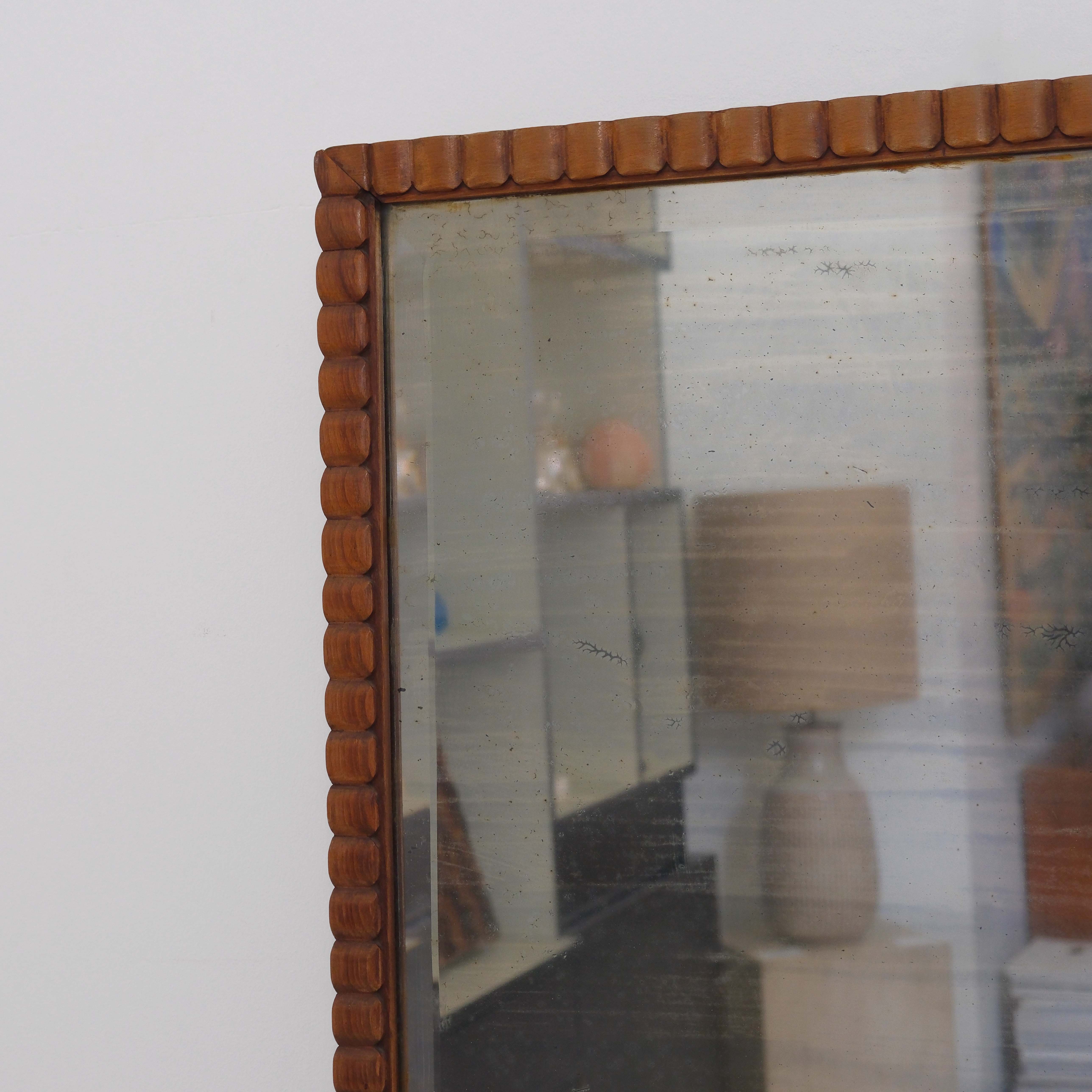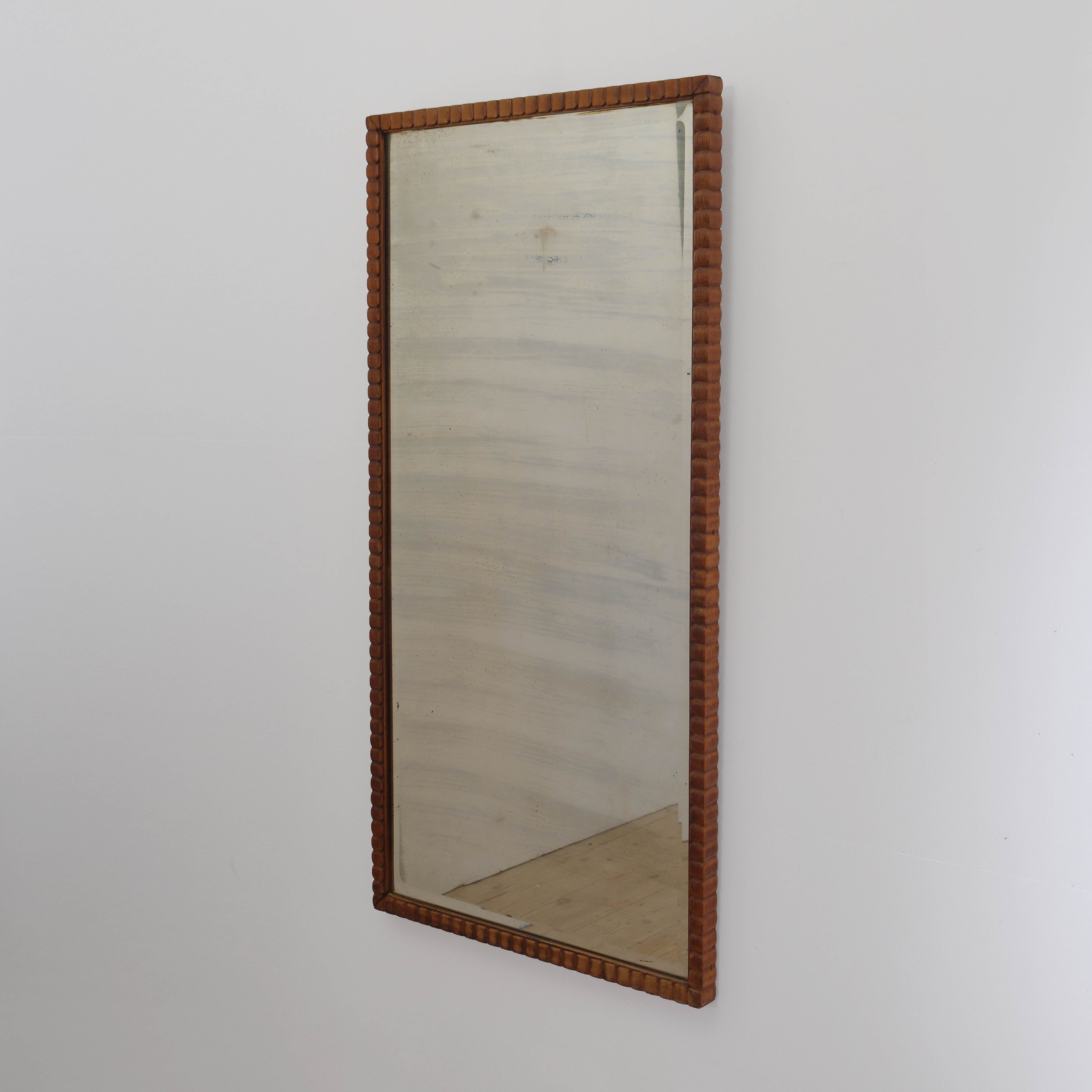 Tall mirror with ridge-carved frame and original beveled plate