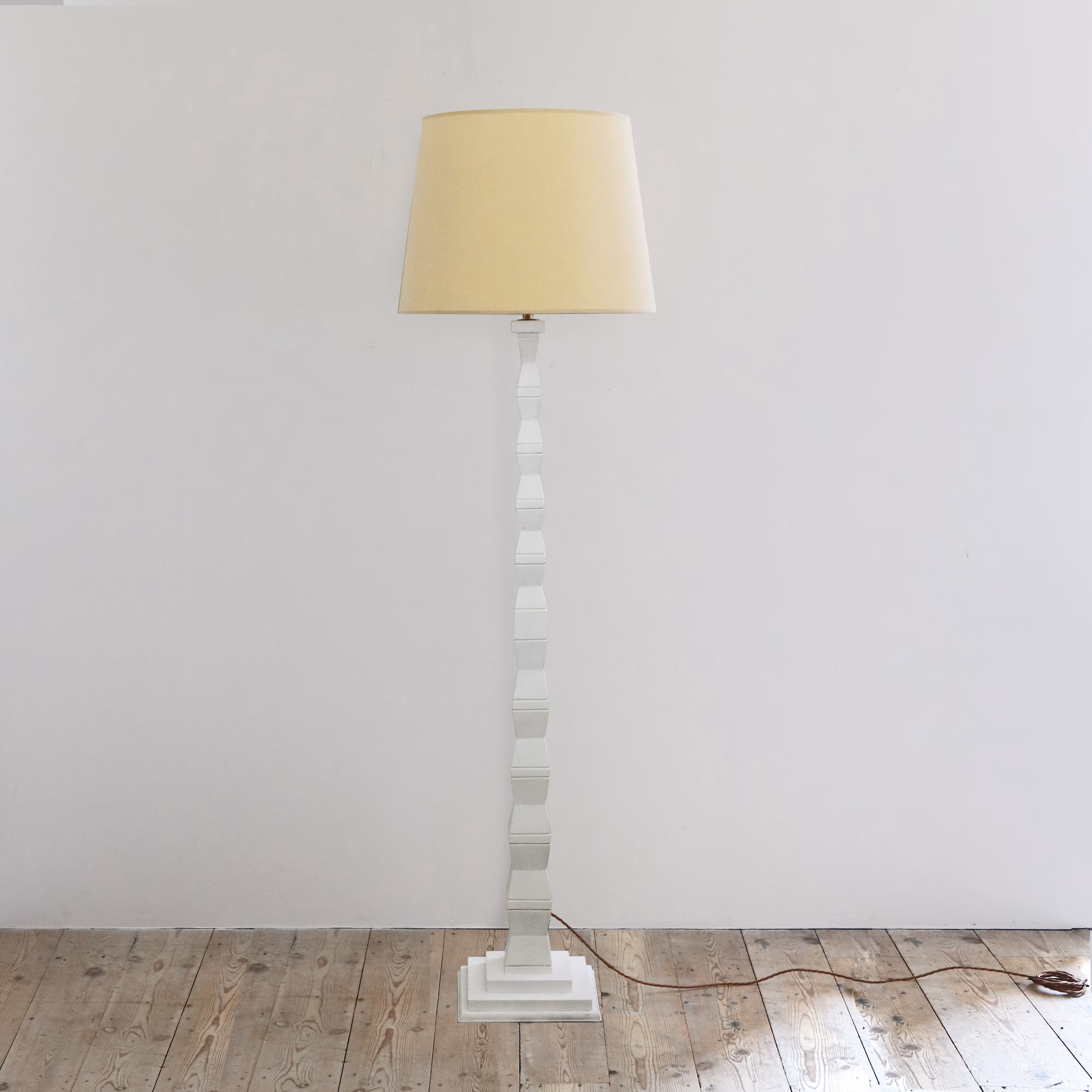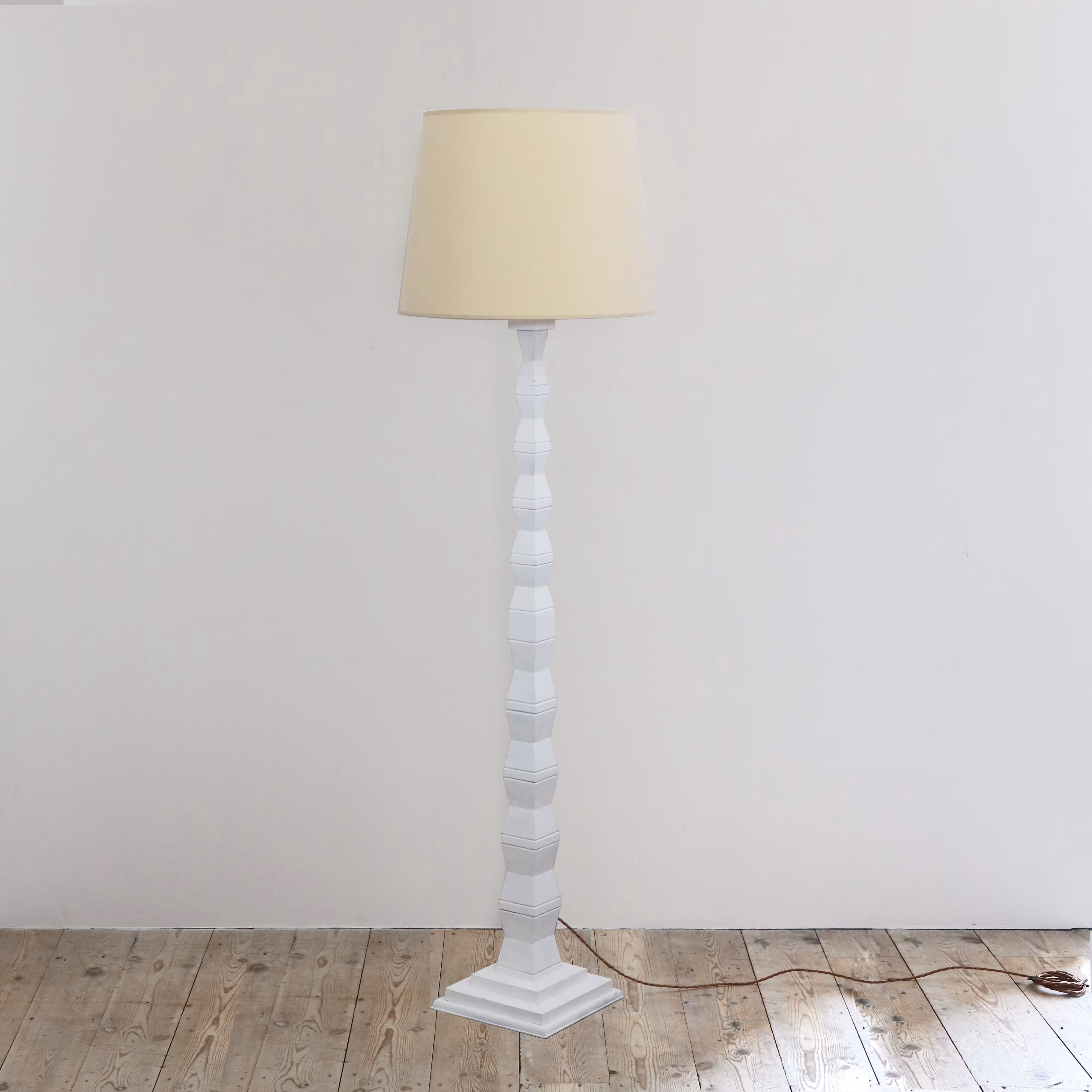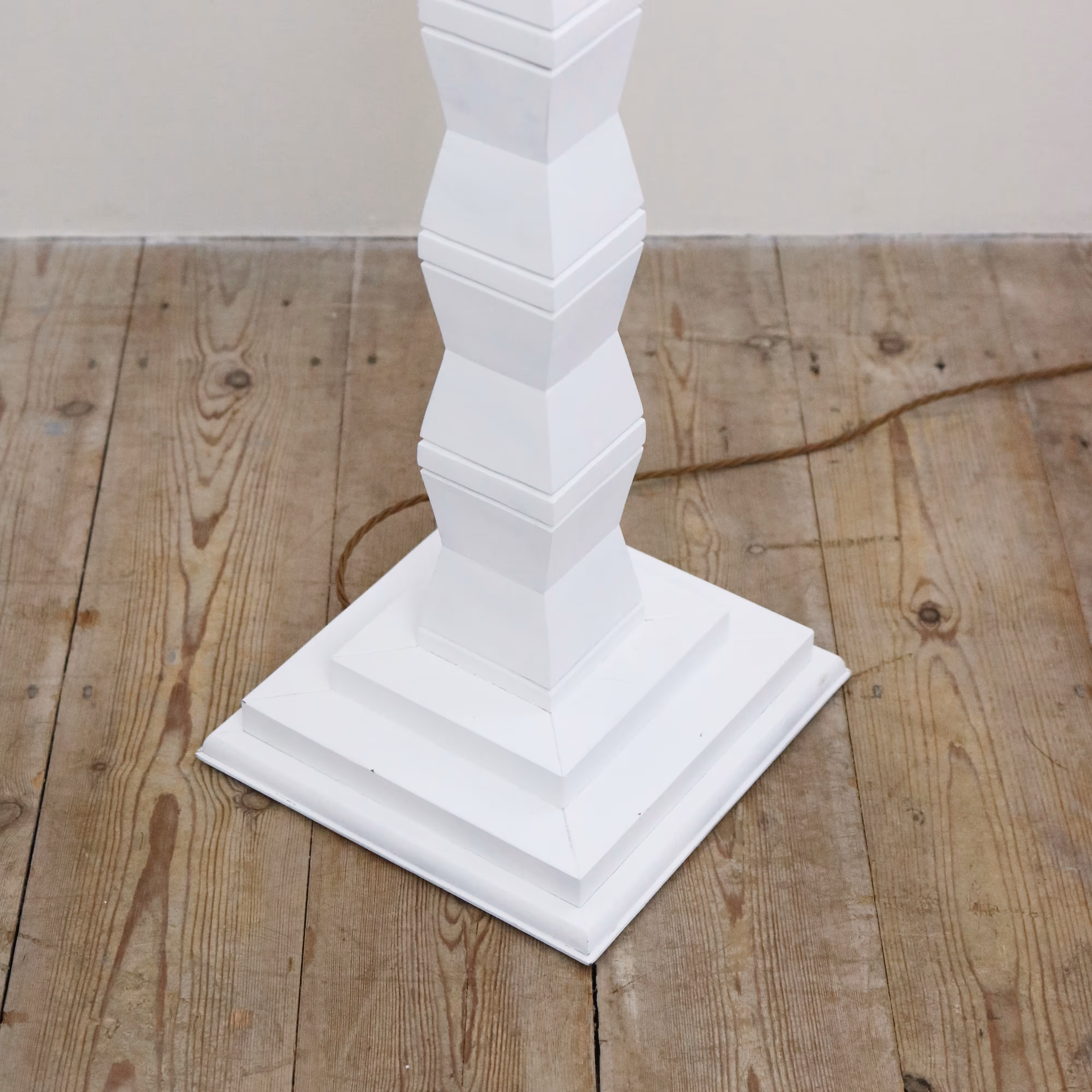 Sculptural wooden floor lamp recently refinished to look like plaster.