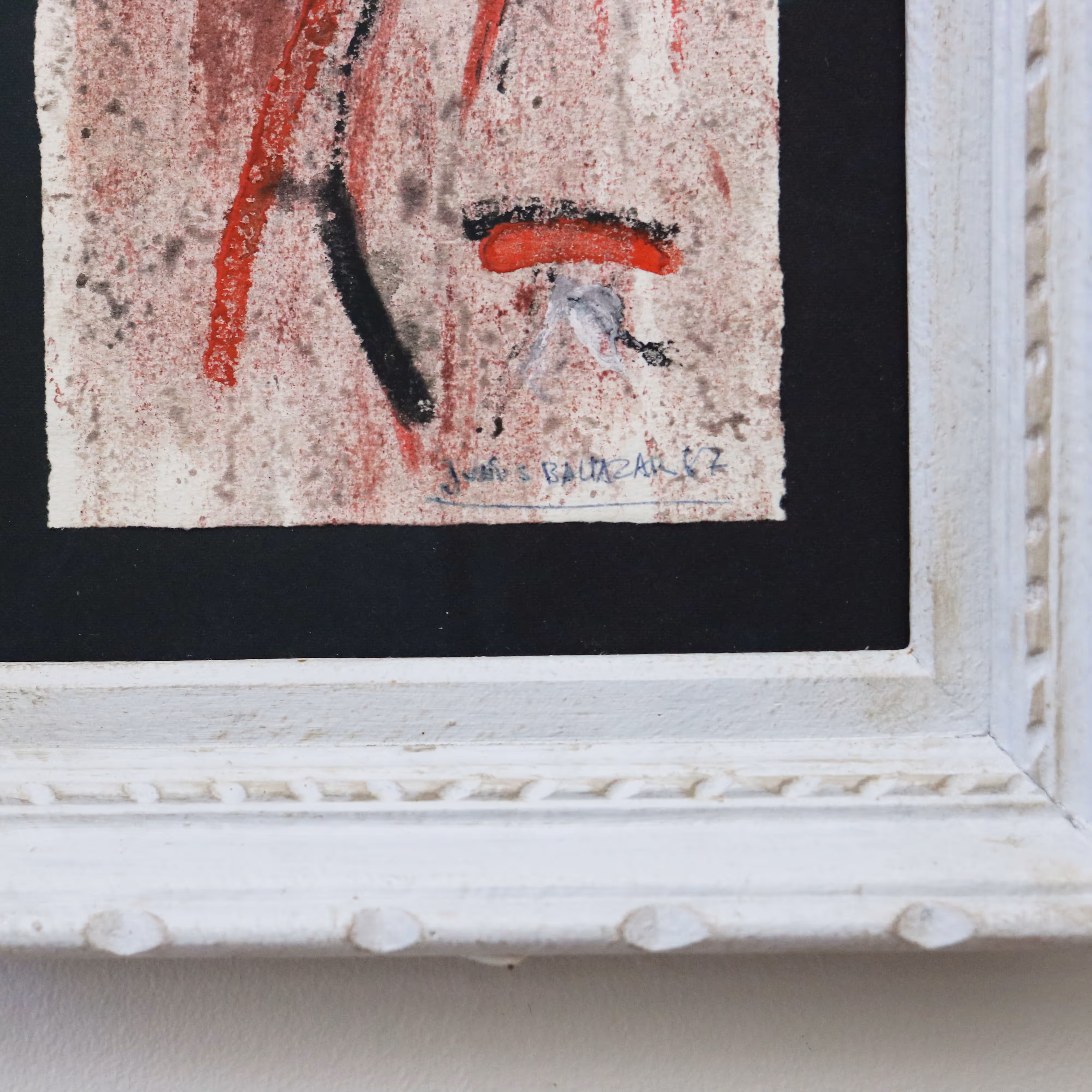 Framed, semi-abstract drawing signed Julius Balthazar (1949-).