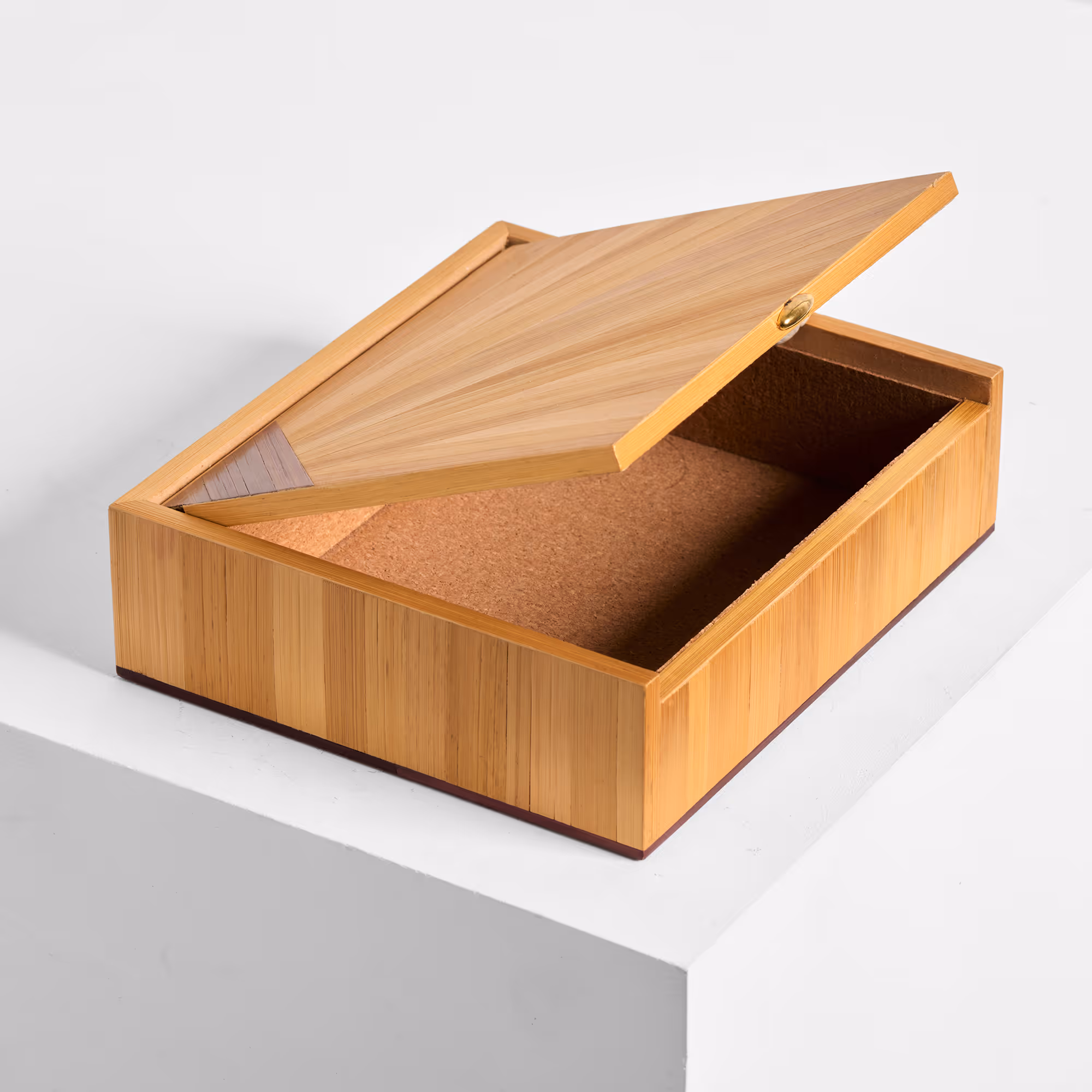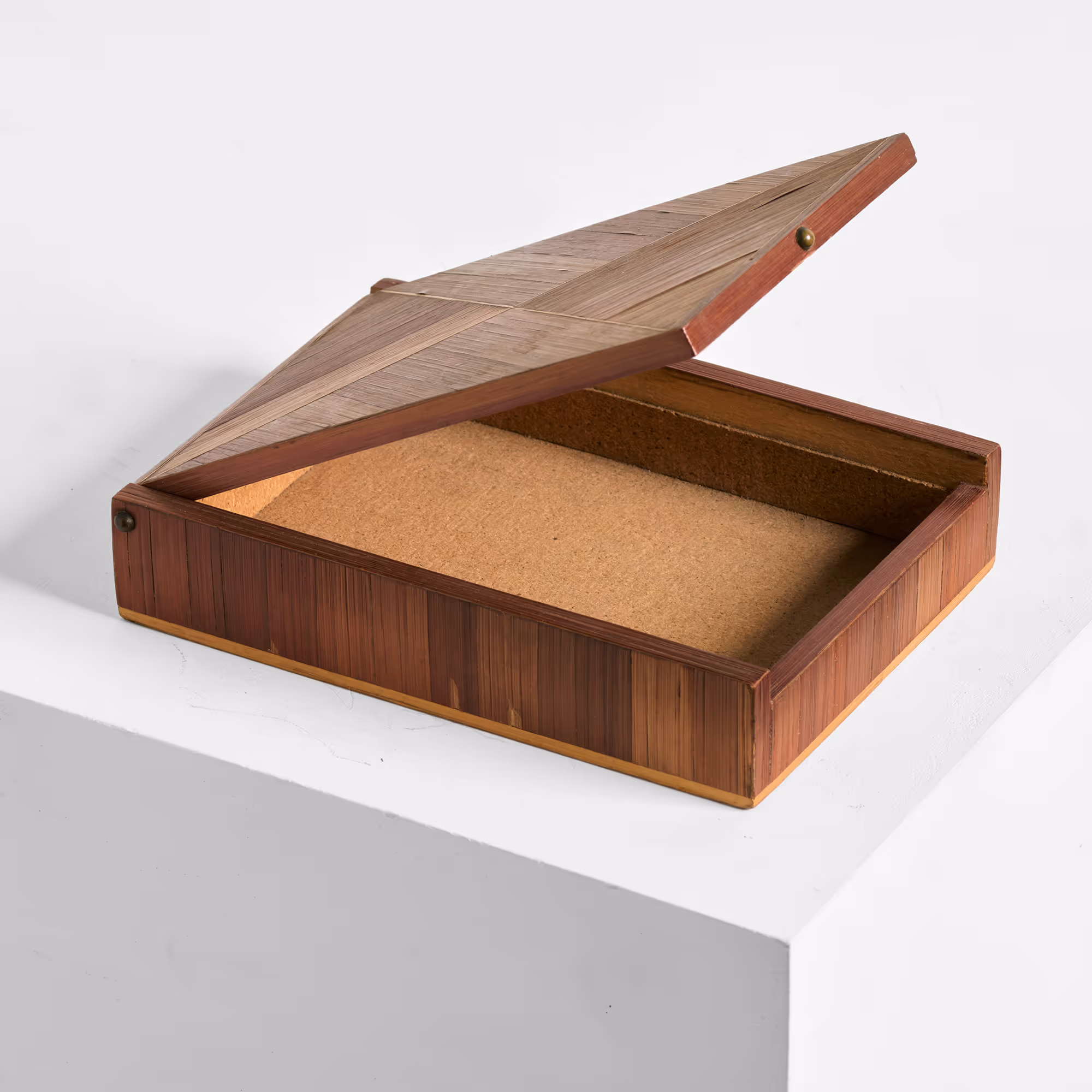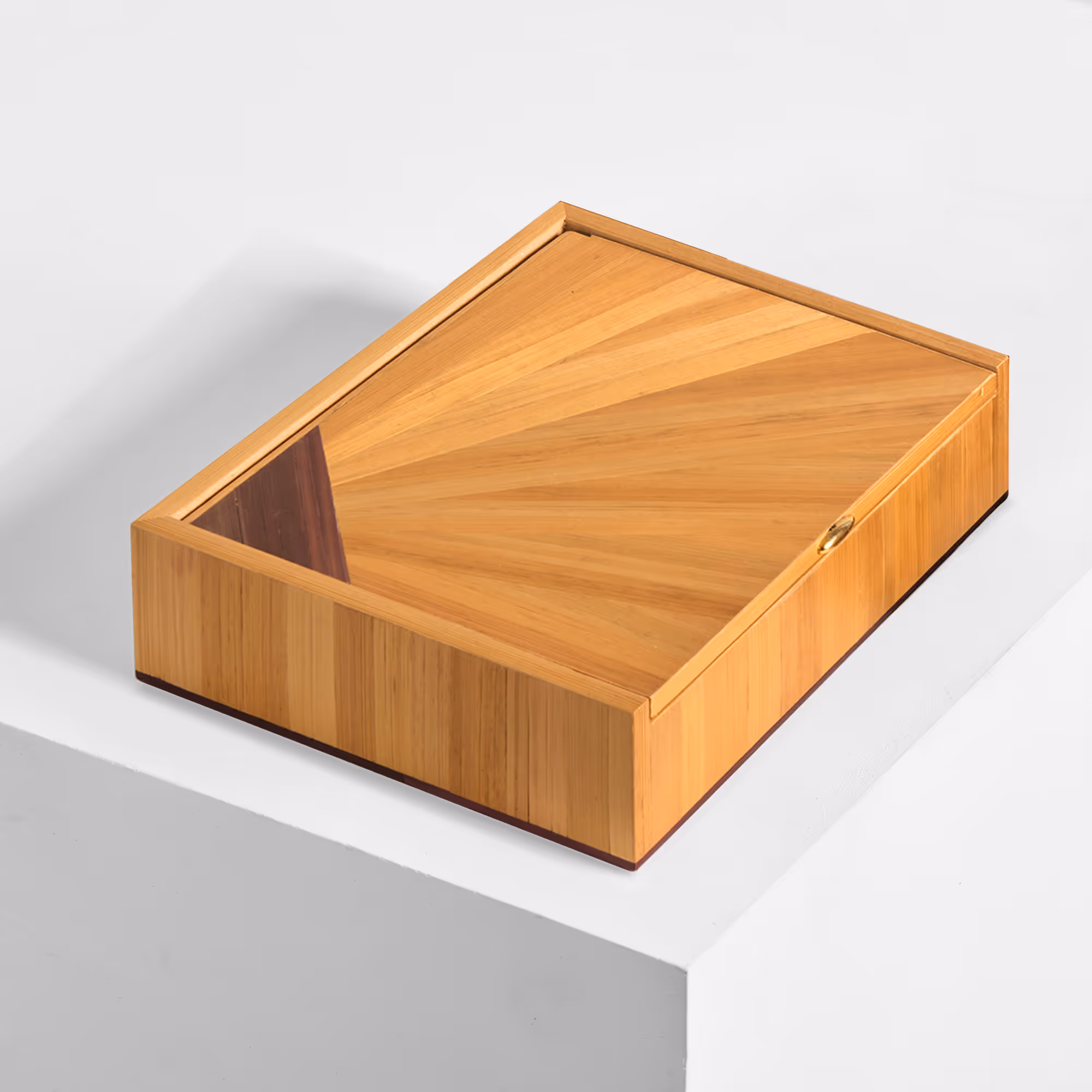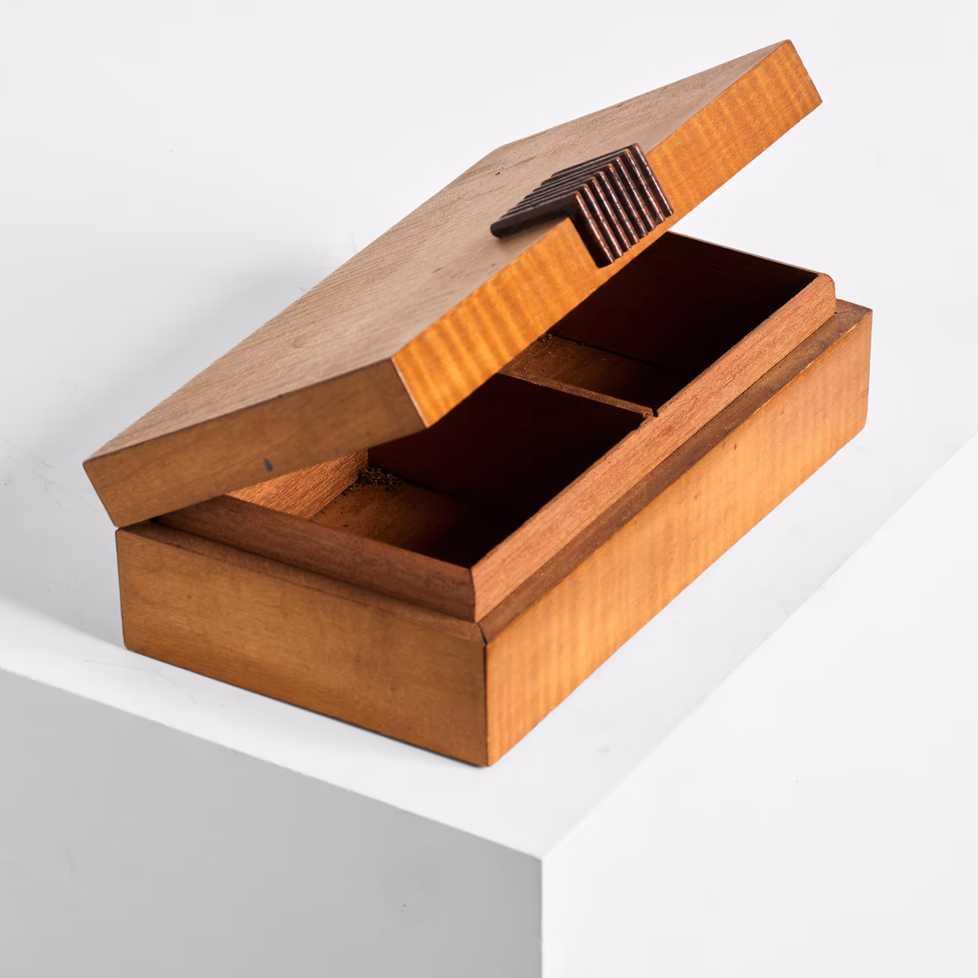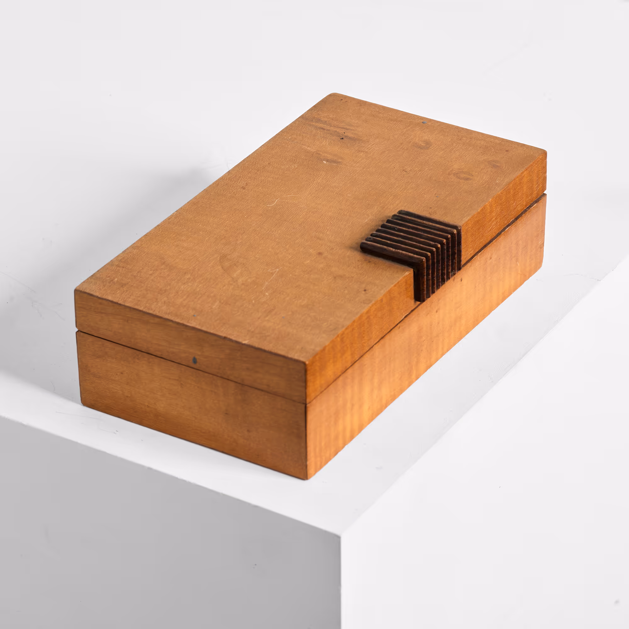 - Smooth wood box with carved wood clasp detail c.1930, £330