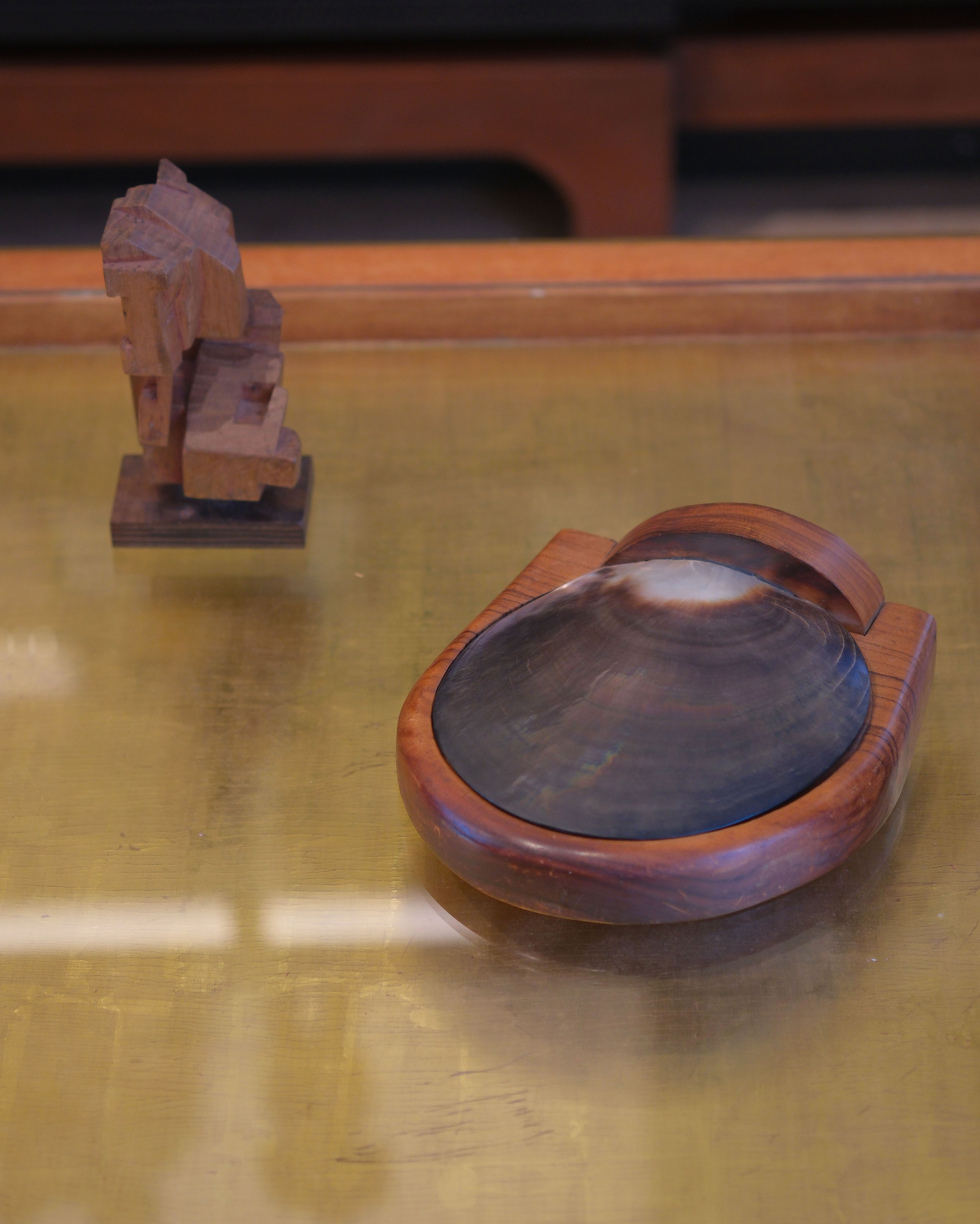 Carved wood box with large Tahitian oyster swivelling lid, in the manner of Alexandre Noll (1890-1970)