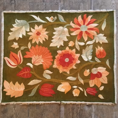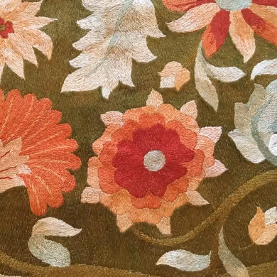Flower embroidery - silk threads on a linen ground. To be made into a cushion or mounted to display on the wall.
